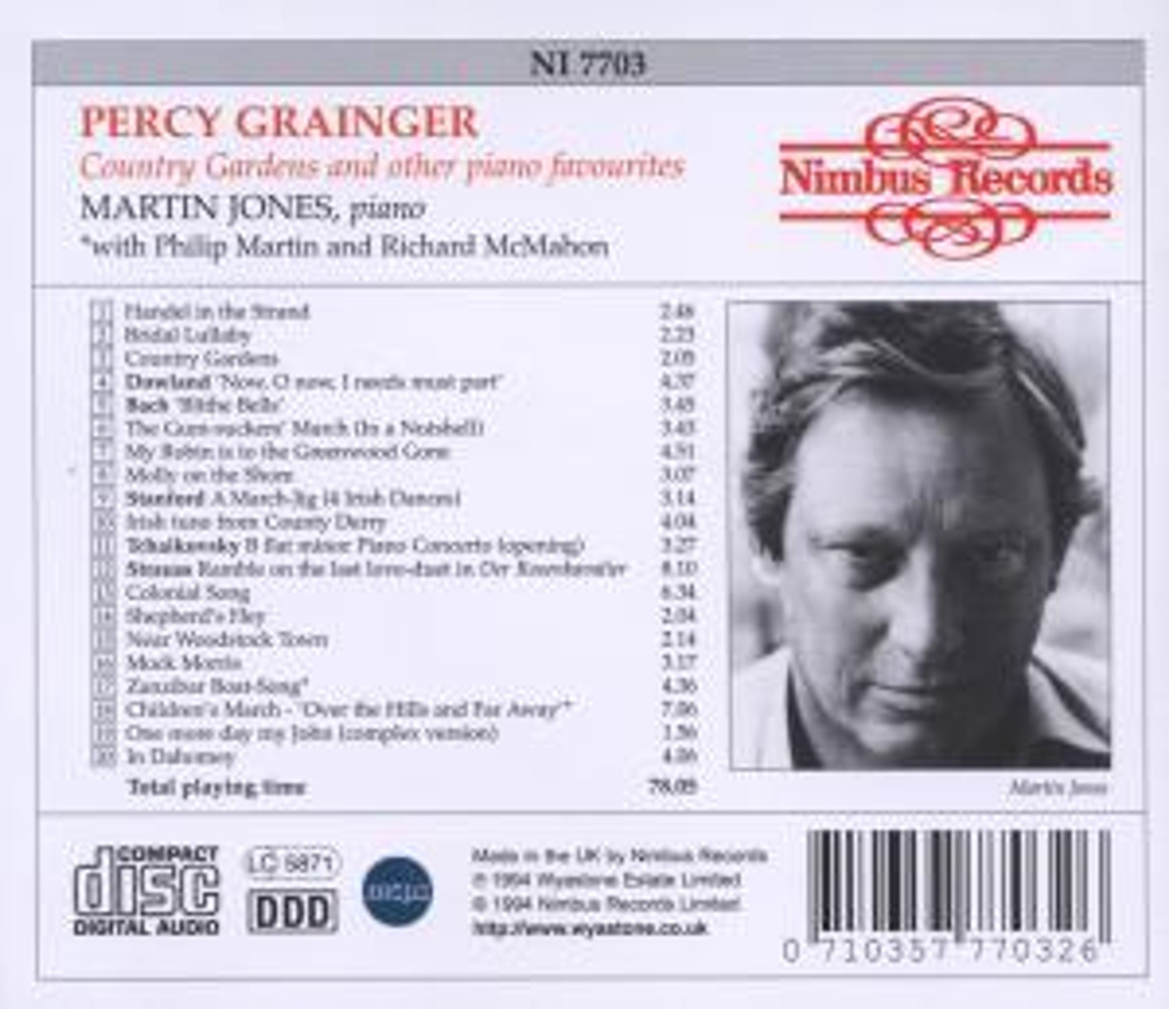 Handel in the Strand; Bridal Lullaby; Country Gardens; Gum-Suckers March; My Robin is to the Greenwood Gone; Molly on the Shore; Irish Tune; Colonial March; Sheperd's Hey; Near Woodstock Town; Mock Morris; Zanzibar Boat-Song; Children's March; One more Day my John; In Dahomey u. a.