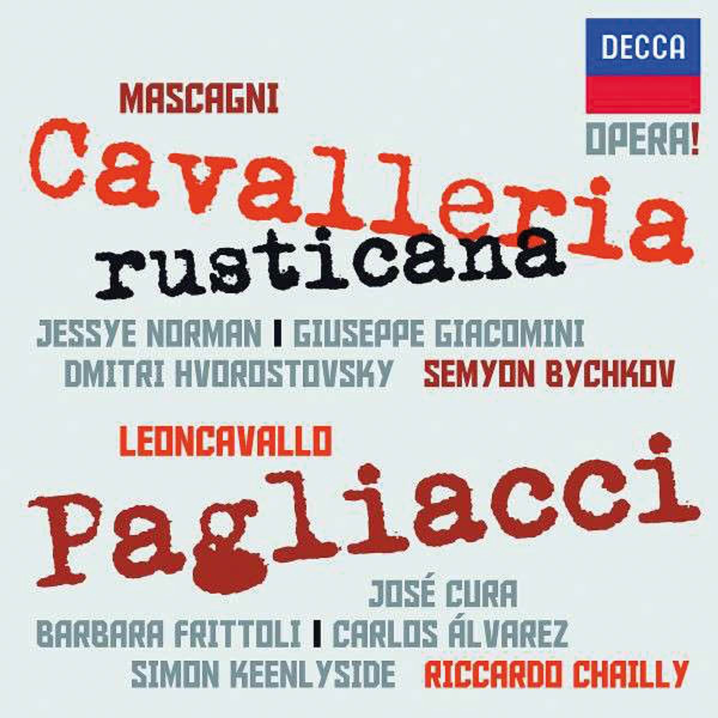 - Jessye Norman, Dmitri Hvorostovsky, Giuseppe Giacomini, Orchestre de Paris, Semyon Bychkov (Cavalleria); Jose Cura, Barbara Frittoli, Marcelo Alvarez, Simon Keenlyside, Concertgebouw Orchestra, Riccardo Chailly (Pagliacci)
