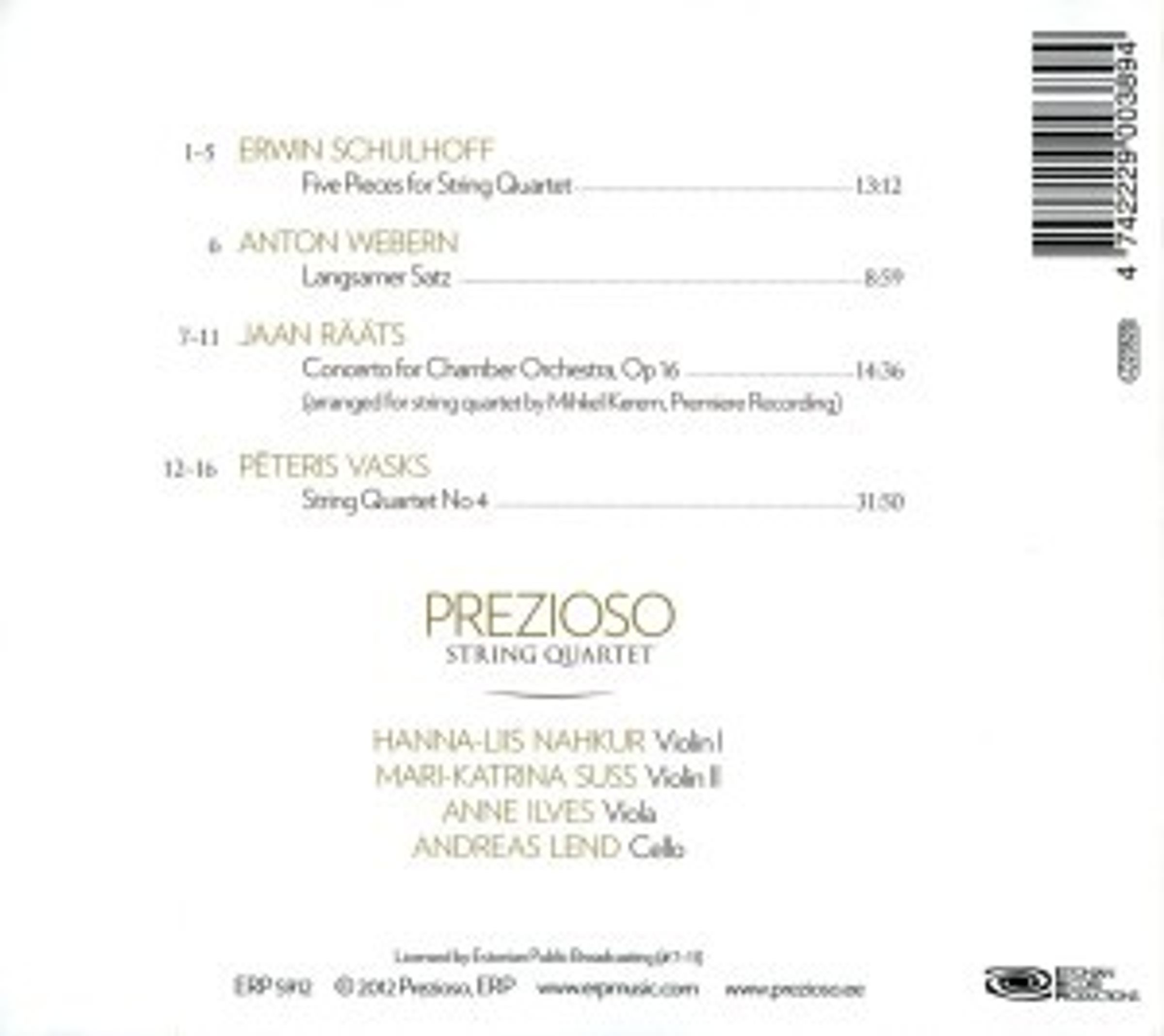 Prezioso String Quartet auf CD