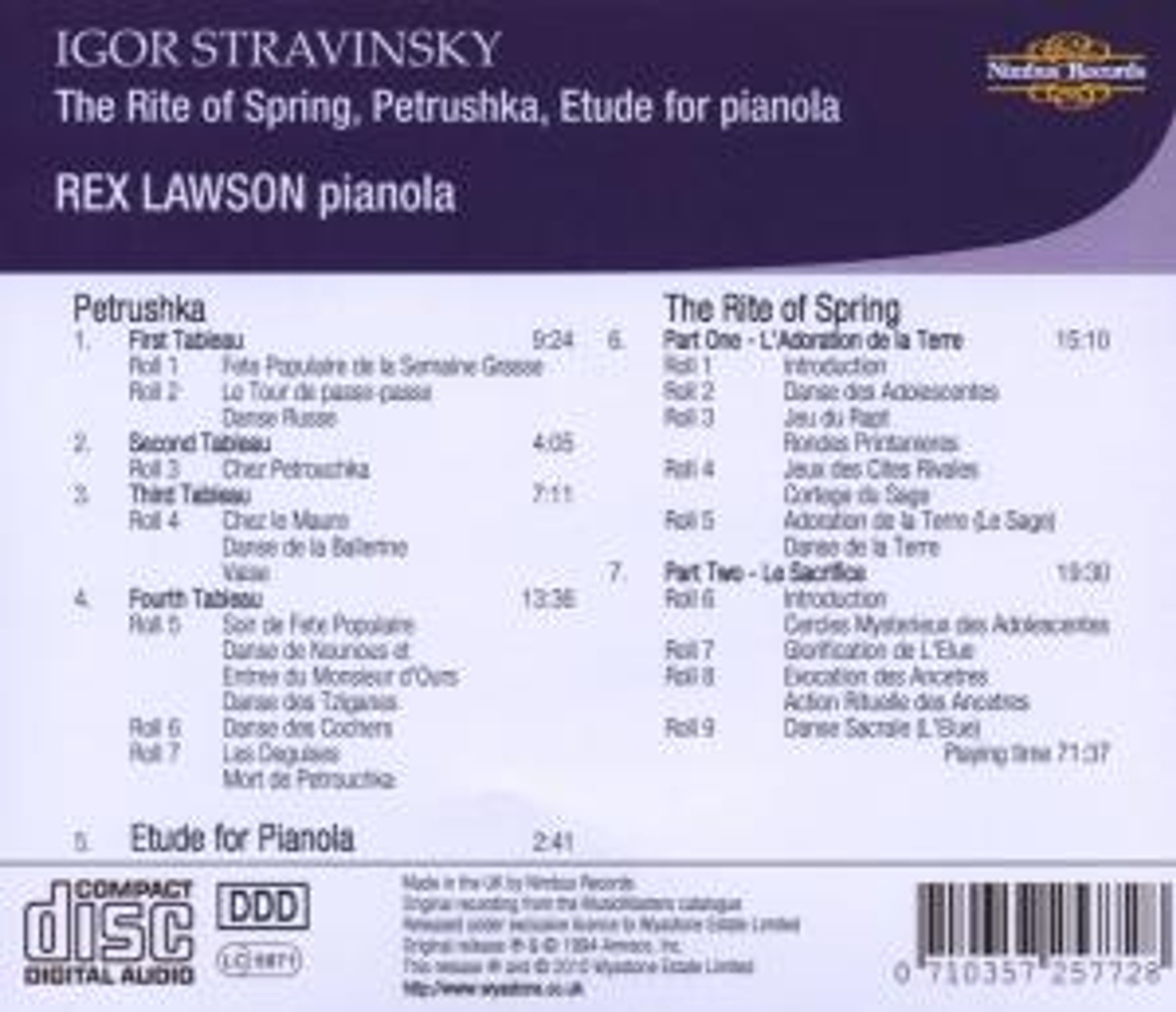 Igor Strawinsky: Le Sacre du Printemps (Fassung für Pianola) auf CD