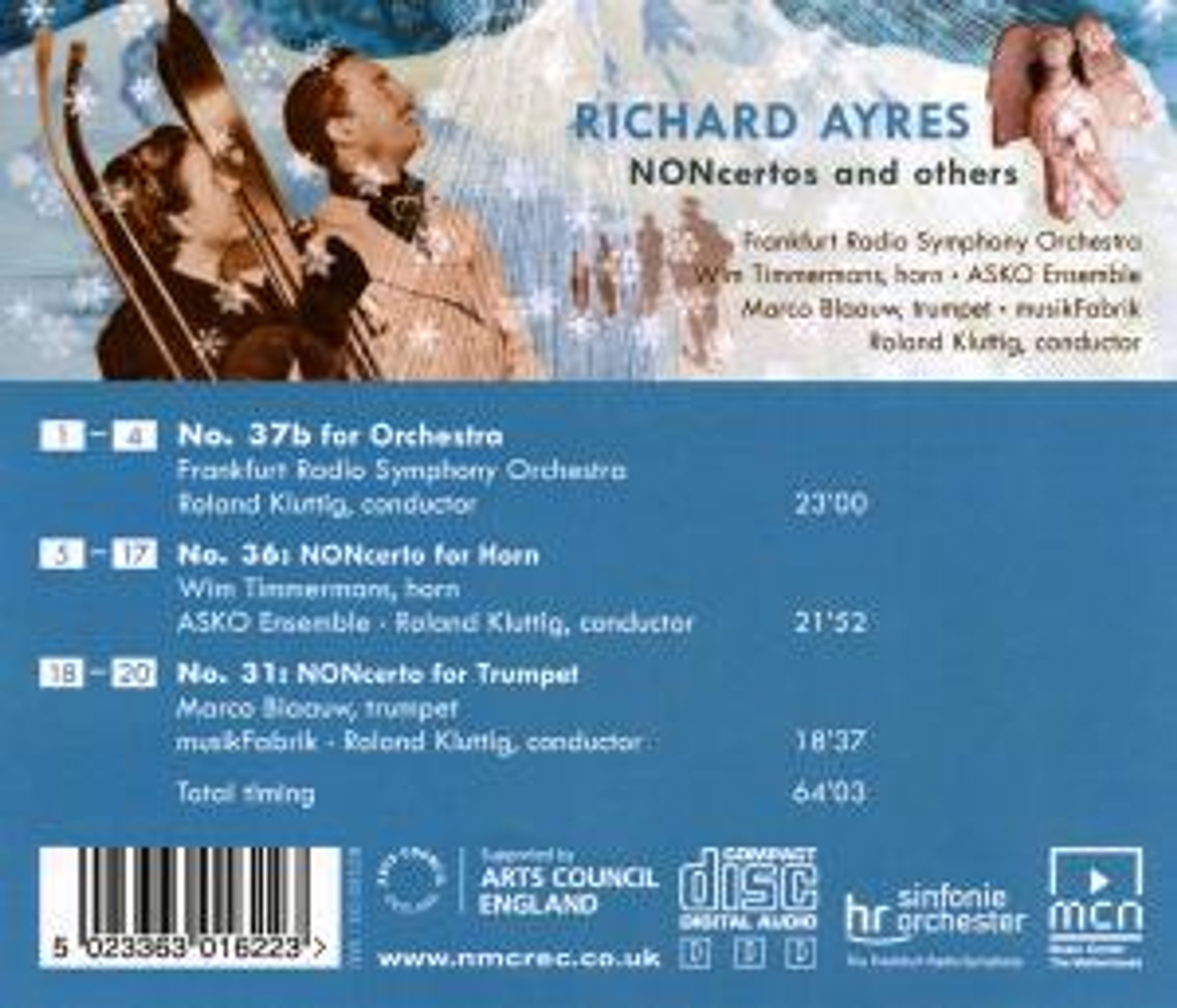 Die Musik des Engländers Richard Ayres (Jahrgang 1965) ist Postmoderne reinsten Wassers: Hemmungslos eklektizistisch, ironisch und respektlos. Auf die Frage nach seinen Inspirationsquellen antwortete er: „... Konsonanzen, Dissonanzen, Melodie, Textur, Elefanten, Wolken, Schneebälle, alles aus jeder Epoche, wann immer es benötigt wird – beschränkt lediglich durch die Grenzen meiner Einbildungskraft!“. Zu hören sind hier mehrere NONcerti, was sowohl „Nichtkonzert“ als auch „Unbestimmtes Konzert“ heißen kann. Der traditionelle Concerto-Gedanke wird hier neu entdeckt und einfallsreich umgedeutet. Ayres Musik mag amüsieren, brüskieren oder auch verwirren – langweilig ist sie aber zu keiner Zeit.