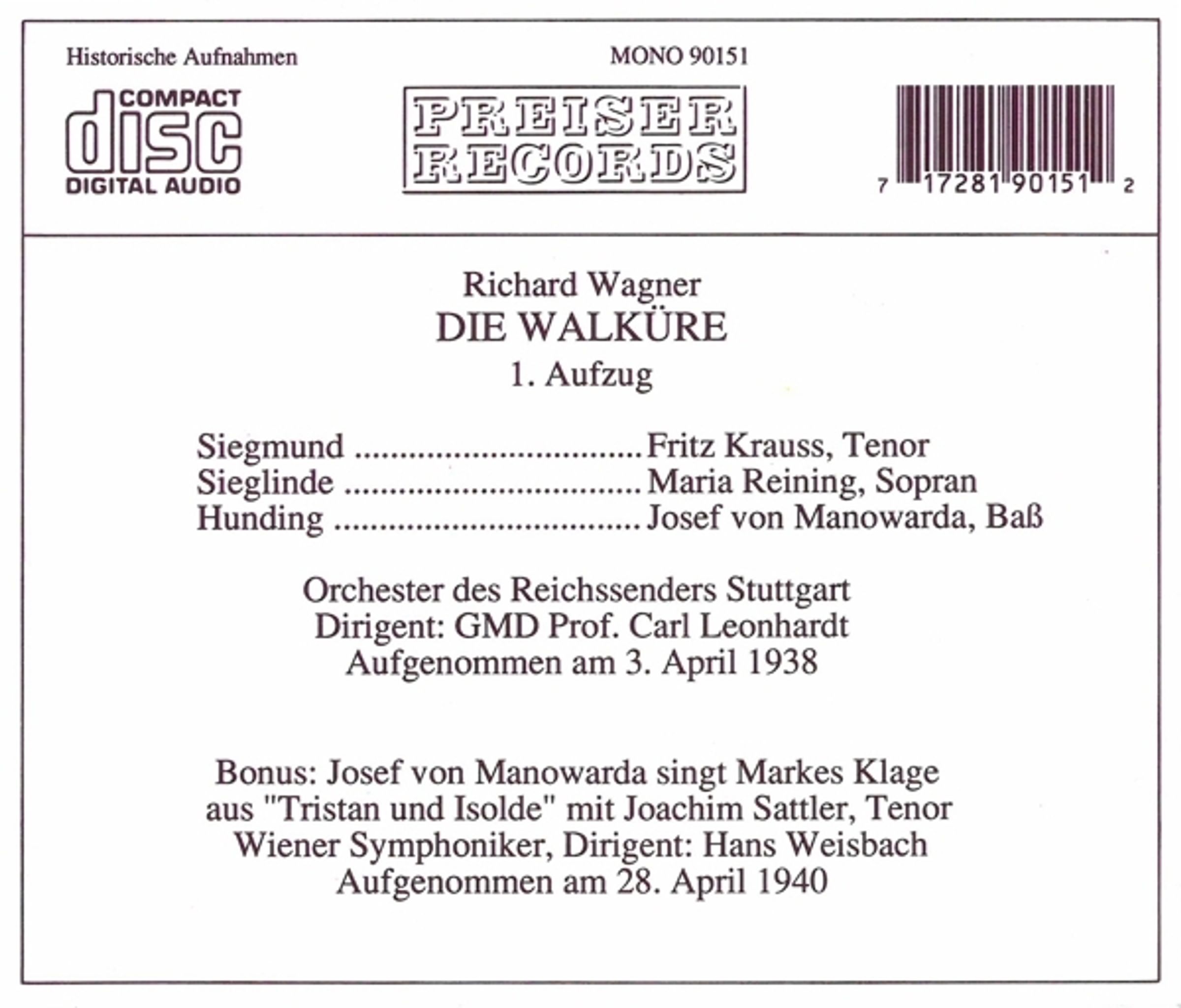 - Fritz Krauss, Maria Reining, Josef von Manowarda, Orchester des Reichssenders Stuttgart, Carl Leonhardt