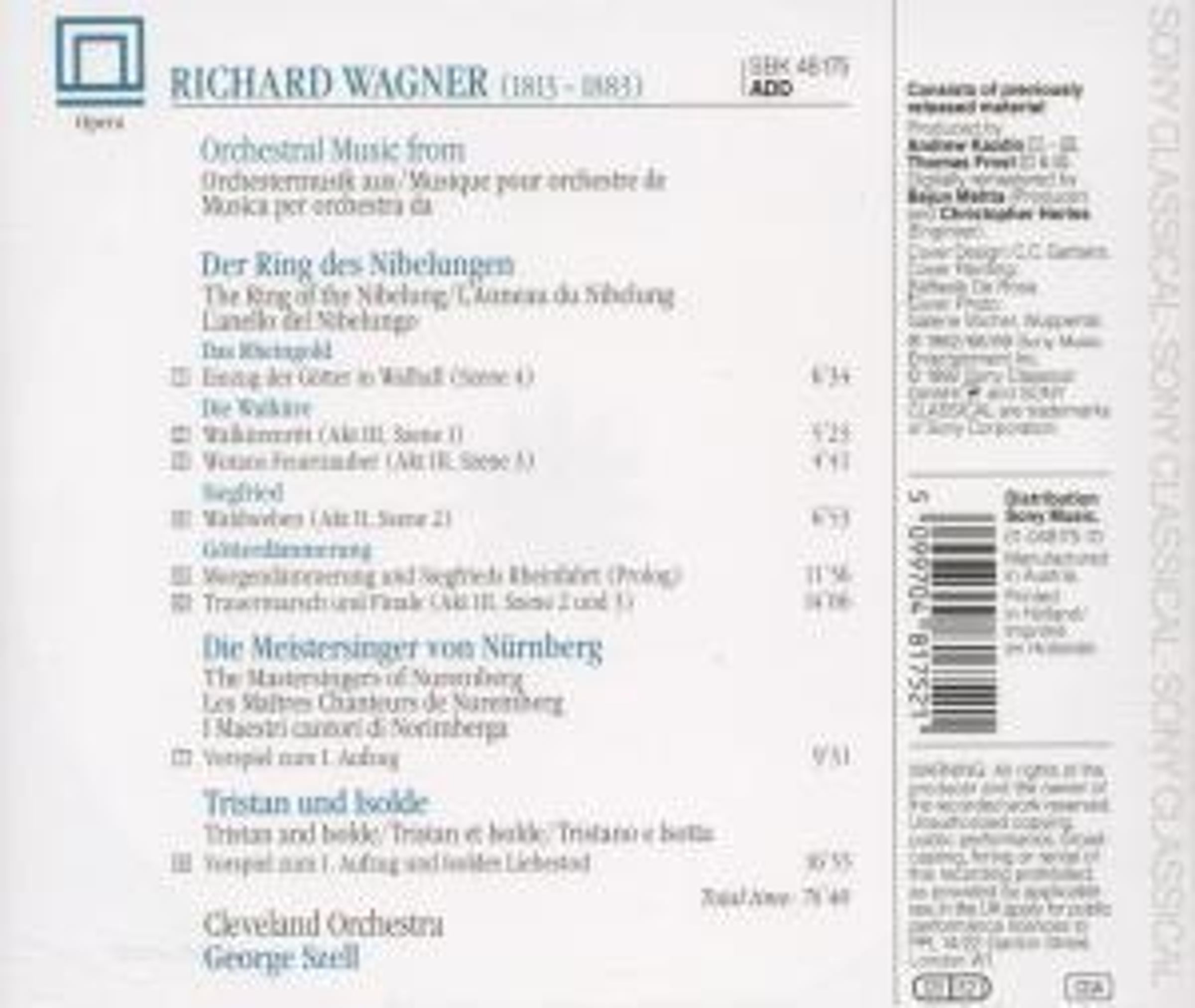 a. Rheingold, Walküre, Siegfried, Götterdämmerung, Meistersinger, Tristan