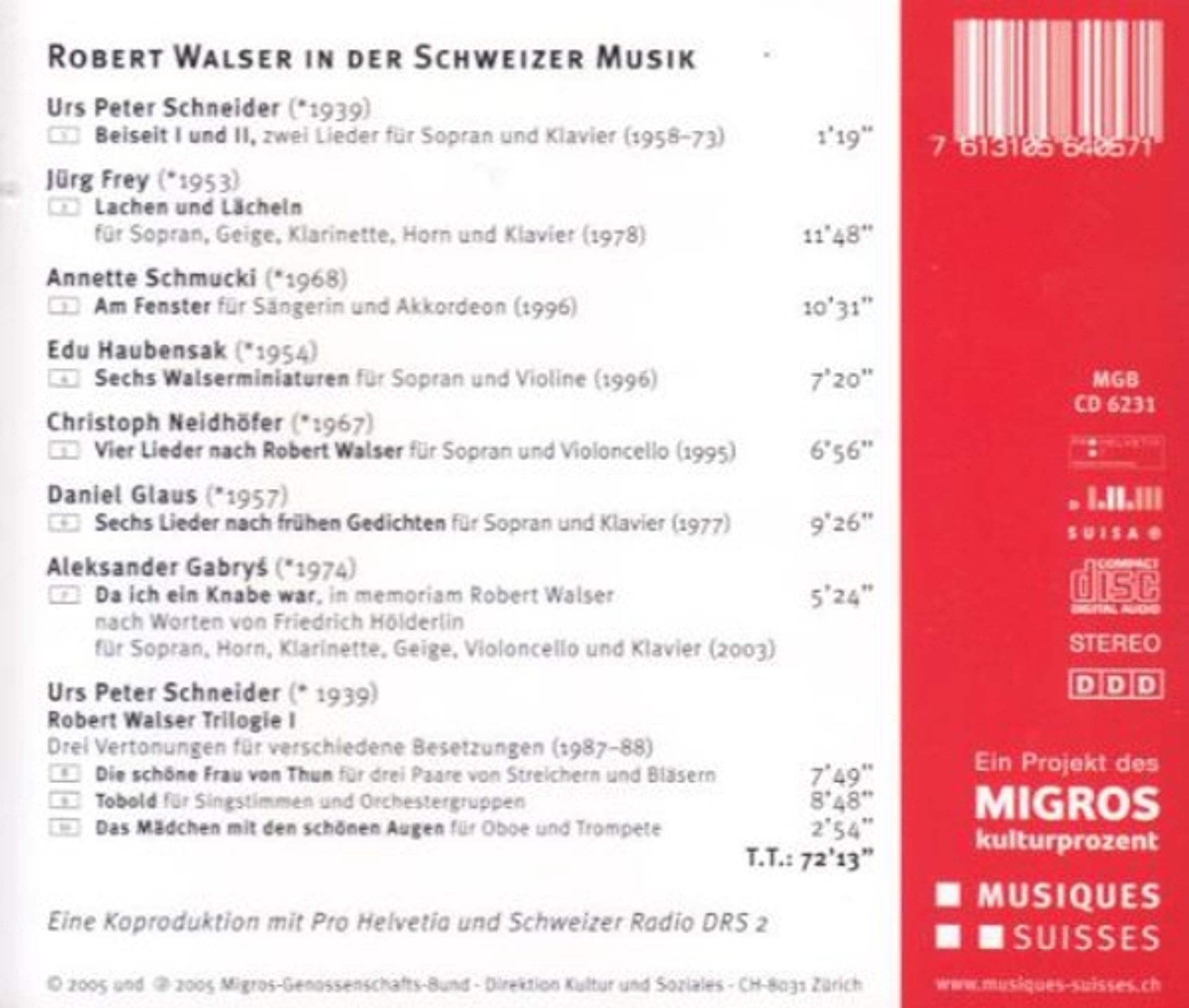 Robert Walser in der Schweizer Musik, CD, CD