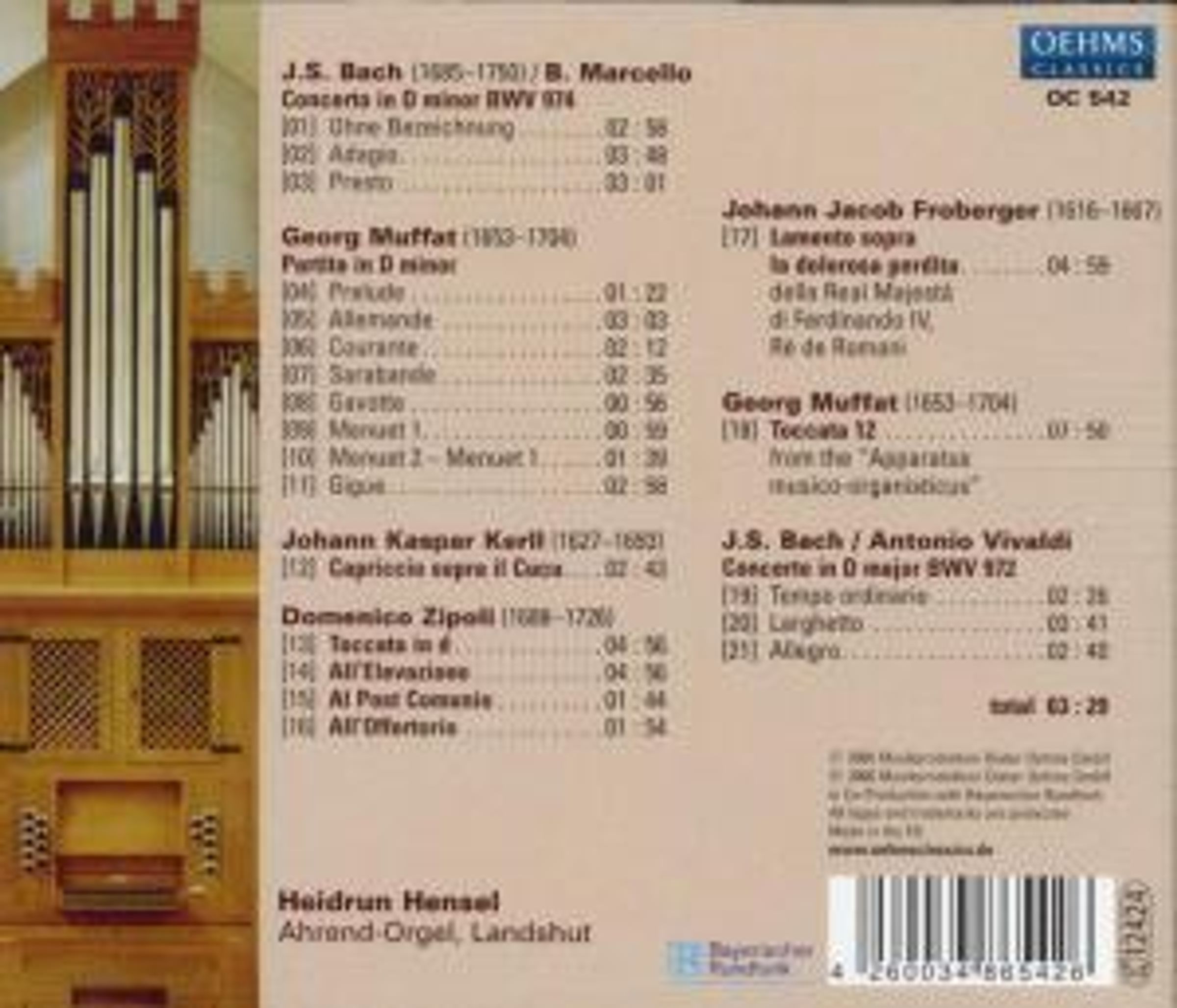 Heidrun Hensel beleuchtet auf ihrer CD Orgelwerke süddeutscher Komponisten des 16. und 17. Jahrhunderts, deren Werke unter dem Einfluss italienischer und französischer Orgelkomposition entstanden. Als Instrument für diese Einspielung wählte sie eine moderne Orgel, die sich zur Interpretation der barocken süddeutschen Orgelmusik besonders eignet, nämlich die Ahrend-Orgel von St. Jodok in Landshut.