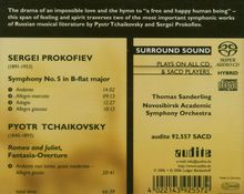 The Russian cultural scene, although largely unnoticed in the West, offers an almost inexhaustible potential in terms of first-class musicians and valuable interpretations. On the present SACD audite presents for the second time the Novosibirsk Academic Symphony Orchestra (NASO), an orchestra more or less unknown in the West but nonetheless highly renowned: Could it be due to this region's geographic remoteness and exoticness, or to the negative connotation of Siberia, that Russian musical culture ends with the Ural Mountains as far as the culturally interested West is concerned? Despite numerous concert tours and major successes in the West, this Siberian orchestra has remained largely unknown up until the present day. This is completely unjustified, for the NASO need not fear comparison with the best-known European orchestras. Founded as long ago as 1956 in Novosibirsk as the result of a government decision to enliven Siberian cultural life, the Orchestra is celebrating its 50th anniversary this year. Arnold Kats was then appointed Music Director and has occupied this position uninterruptedly ever since. At first, alongside Novosibirsk, its concert activities were limited to cities in the eastern provinces of the former Soviet Union. Later on, concert organisers in the western Russian provinces discovered the Orchestra as well. Following successful performances in Moscow and Leningrad, the Orchestra undertook its first concert tour in the allied country of Bulgaria. Already in 1978, the Orchestra was permitted to undertake its first concert tour in the West - in Italy. Since then, numerous tours have regularly taken the orchestra to the great concert halls of the West European capitals and to Japan. Since 2002 Thomas Sanderling is the Permanent Guest Conductor of the orchestra. Following the production of the Symphony No. 2 and the Caprice bohèmien by Sergei Rachmaninov with the NASO under Arnold Kats audite now releases a second SACD with this unique orchestra under Thomas Sanderling. Once again the orchestra is presented with a truly Russian repertoire: The beloved Fantasia-Ouverture »Romeo and Juliette« by Peter Tchaikovsky takes the listener to the world of the Shakespear-drama about love and hatred the Symphony No. 5 by Sergei Prokofiev gives us an impression of the »new simplicity«, an idea promoted by the composer himself: rich melodic invention and rhythmic vitality with a colouration at once objectively hard and romantic are united to form a heroic monumental style. In honour of the Orchestra's 50th anniversary, audite presents a second production which attains the highest standards in interpretative and sound quality, motivating listeners to make further discoveries in the Russian musical scene.