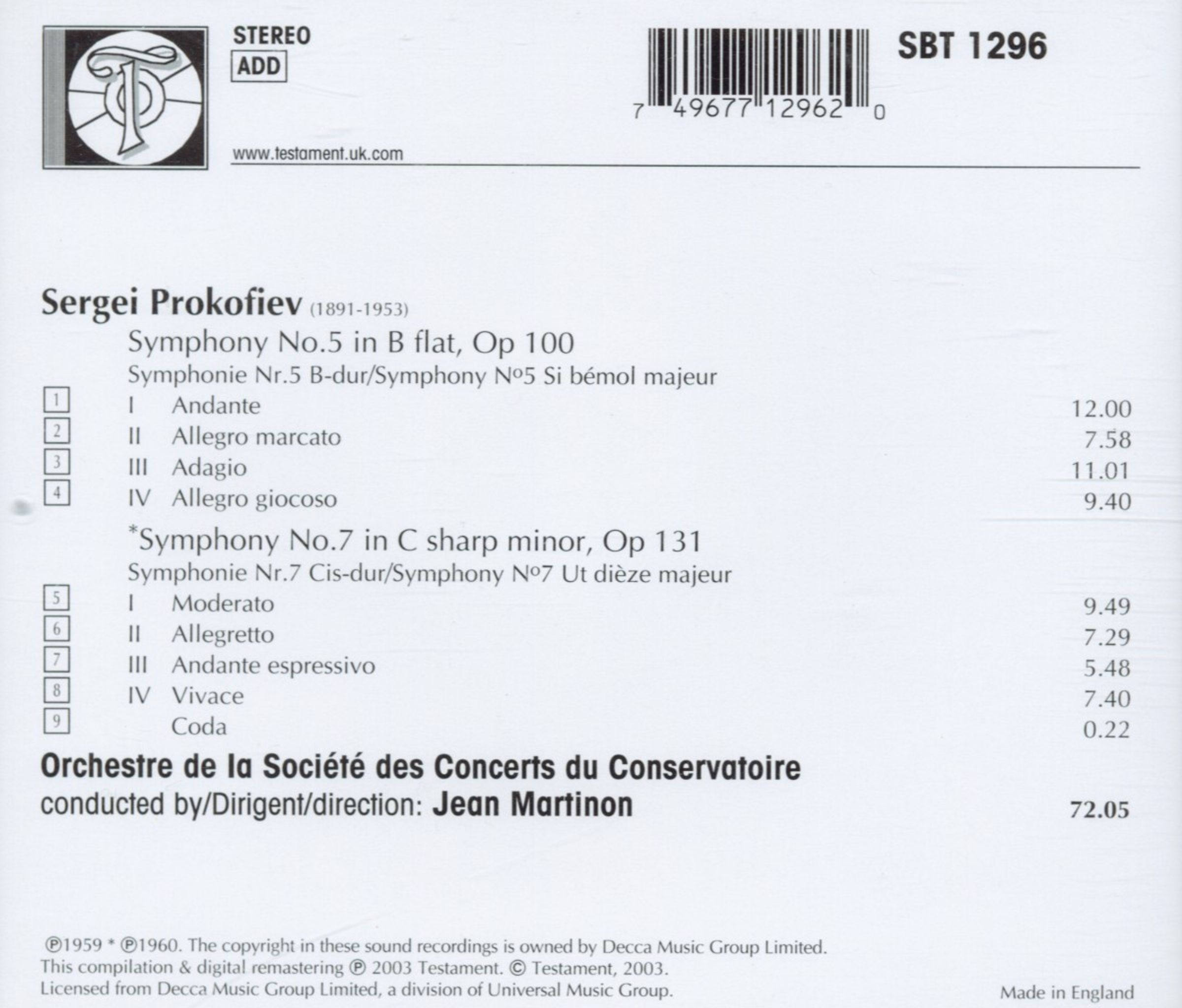 Die Aufnahme präsentiert einen der großen Dirigenten des 20. Jahrhunderts mit zwei symphonischen Meisterwerken des 20. Jahrhunderts. Jean Martinons Prokofieff überzeugt durch seinen zugleich intimen wie kraftvollen Ansatz dieser pulsierend erregenden Musik.
