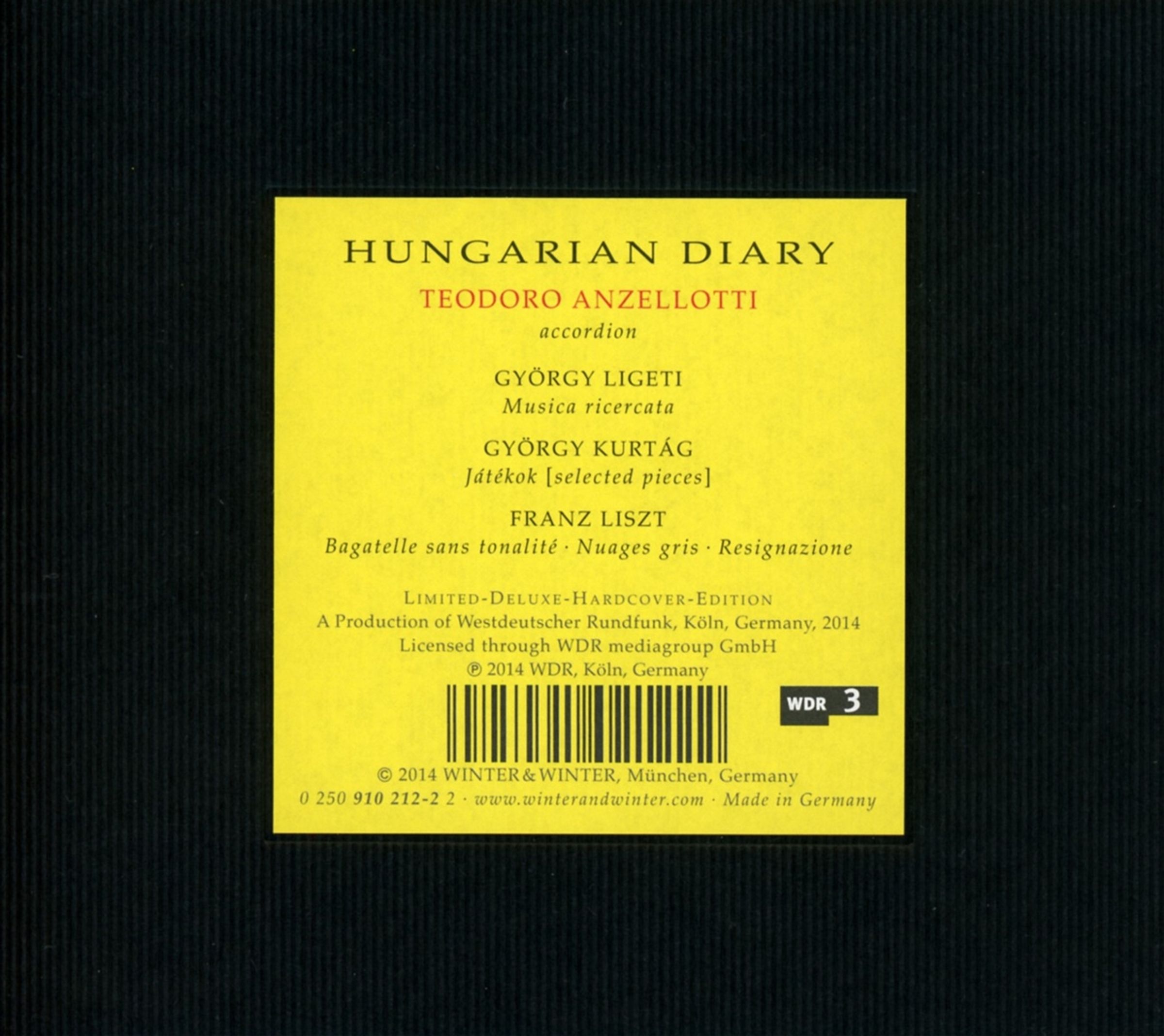 Für das kommende Jahr hat Winter&Winter herausragende Instrumentalisten ausgewählt, um Soloalben aufzunehmen. Teodoro Anzellotti steht am Anfang dieser Werkreihe, ihm folgen Uri Caine, Ernst Reijseger und Fumio Yasuda, um die ersten zu nennen. Anzellotti wählt Ligeti, Kurtág und Liszt aus, hierfür schreibt er Kompositionen für Akkordeon um, es ist herauszuheben, dass diese Bearbeitungen sowohl von und mit Kurtág als auch von Ligeti autorisiert sind.