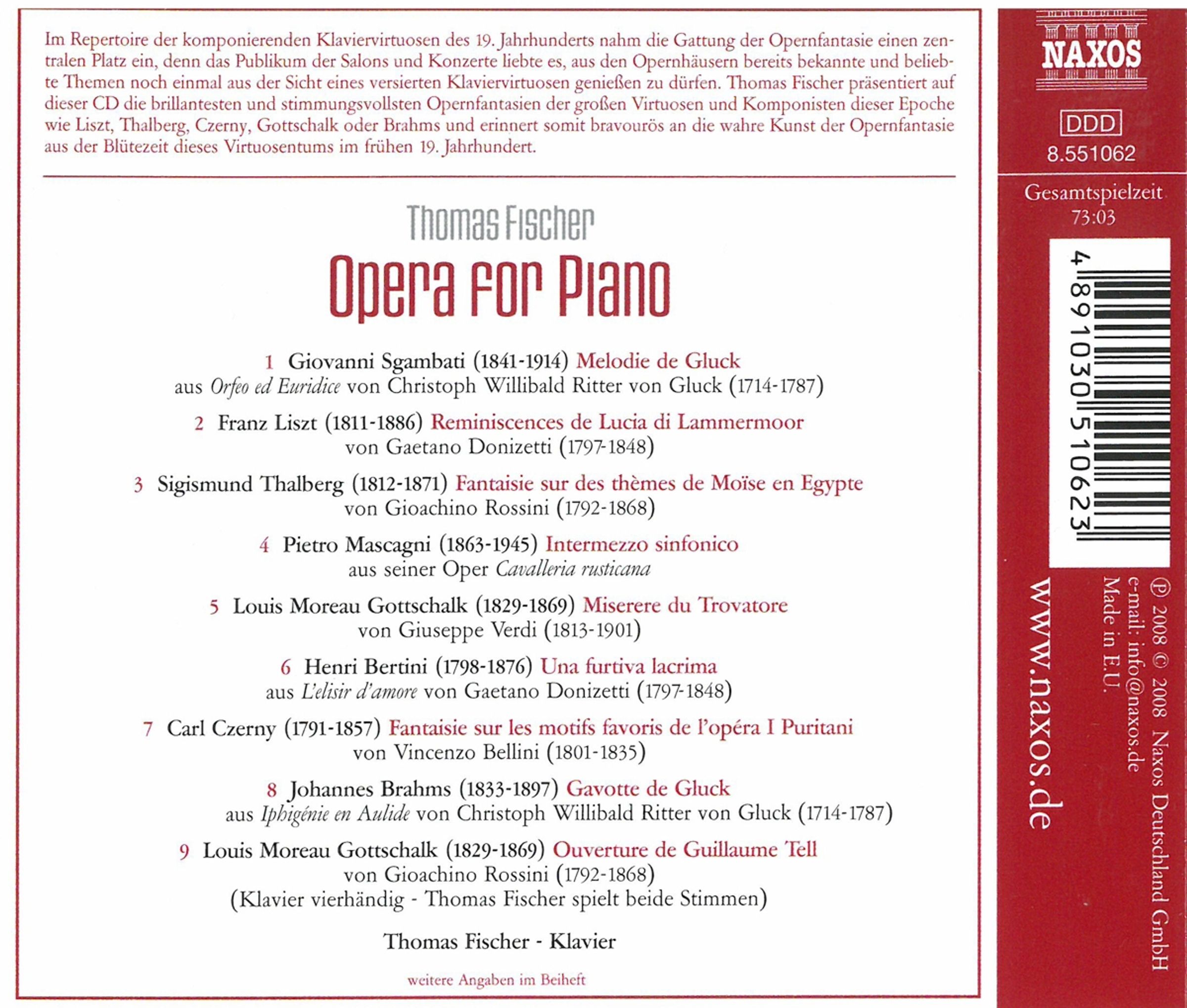 Dieses Album enthält Klavierinterpretationen verschiedener Opernstücke und demonstriert Fischers Können und einzigartigen Ansatz zur klassischen Musik.
