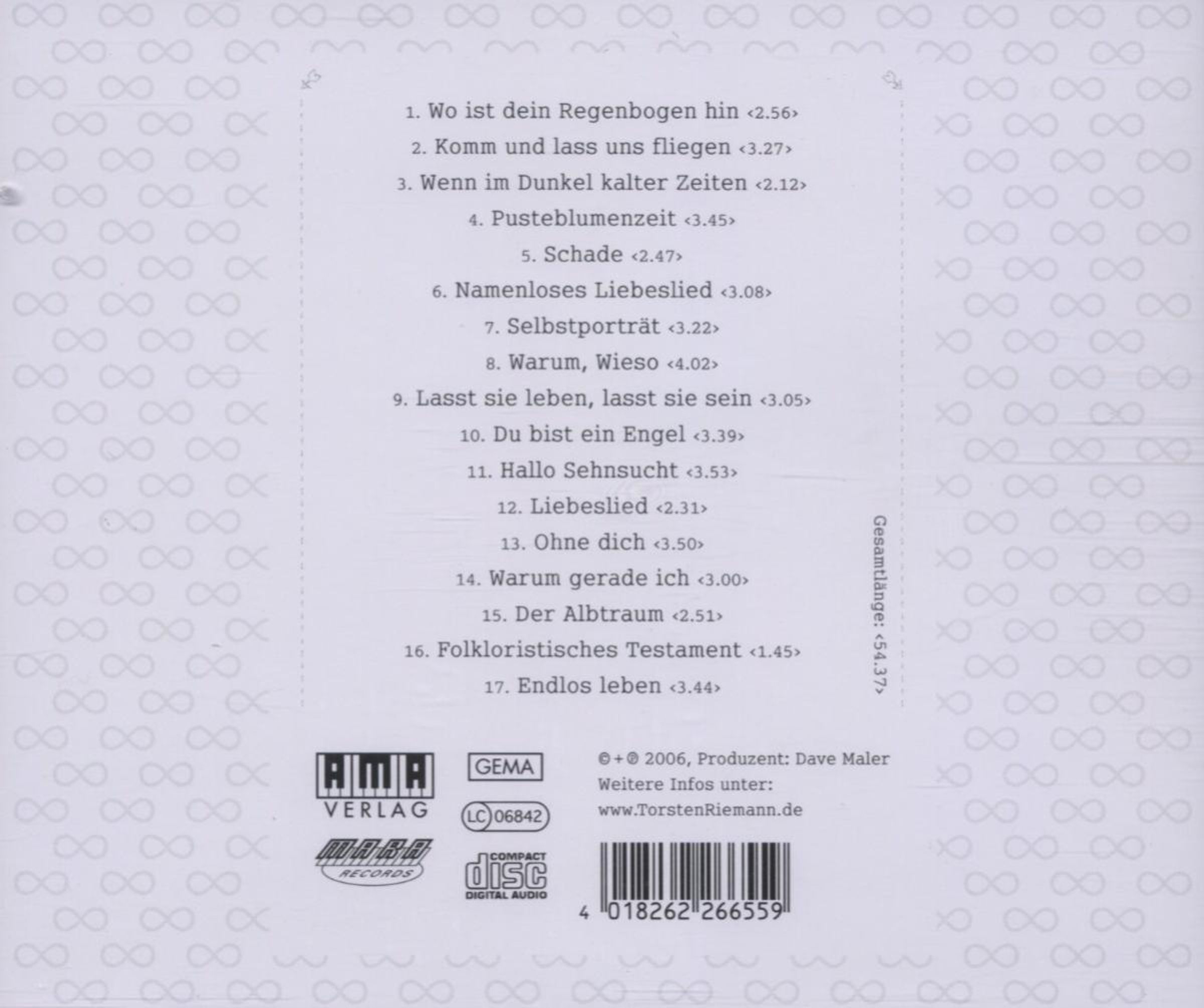 Wo Ist Dein Regenbogen Hin 02: 58; Komm Und Lass Uns Fliegen 03: 29; Wenn Im Dunkel Kalter Zeiten 02: 14; Pusteblumenzeit 03: 47; Schade 02: 49; Namenloses Liebeslied 03: 10; Selbstporträt 03: 24; Warum, Wieso 04: 04; Lasst Sie Leben, Lasst Sie Sein 03: 07; Du Bist Ein Engel 03: 41; Hallo Sehnsucht 03: 55; Liebeslied 02: 33; Ohne Dich 03: 52; Warum Gerade Ich 03: 02; Der Albtraum 02: 53; Folkloristisches Testament 01: 47; Endlos Leben 03: 44;