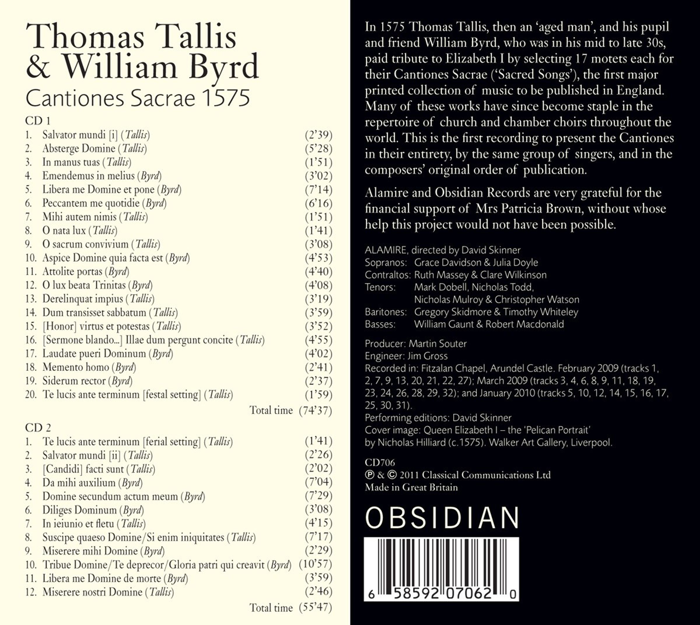 Alamire unter seinem Gründer David Skinner legt hier erstmals eine Gesamtaufnahme in der Reihenfolge des Erstdruckes von 1575 vor. Darüber hinaus konnte mit der Fitzalan Chapel in Arundel Castle ein geradezu idealer