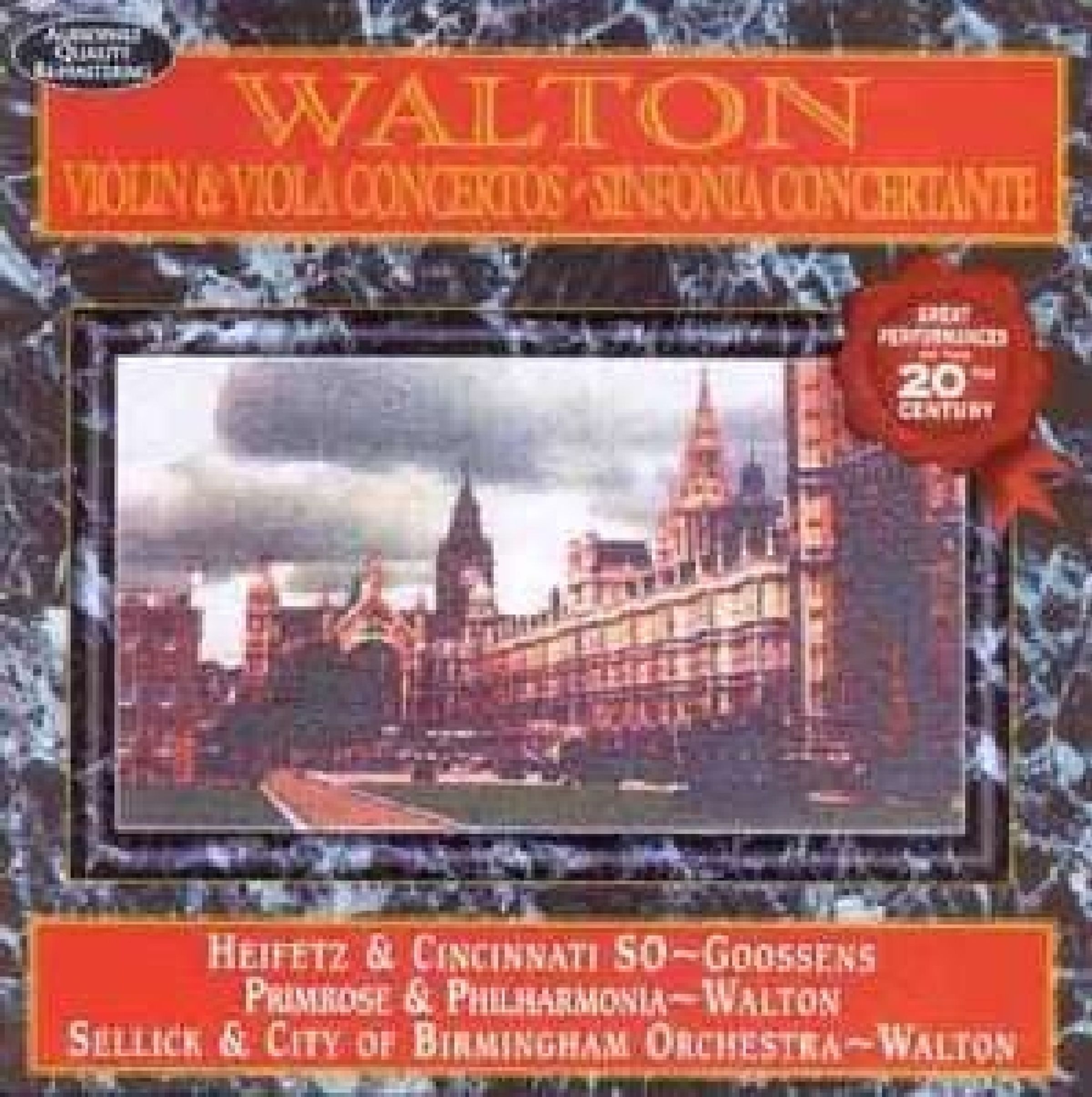 Jascha Heifetz, William Primrose, Phyllis Sellick, Cincinnati Symphony Orchestra, Philharmonia Orchestra, City of Birmingham Symphony Orchestra, Eugene Goossens, William Walton