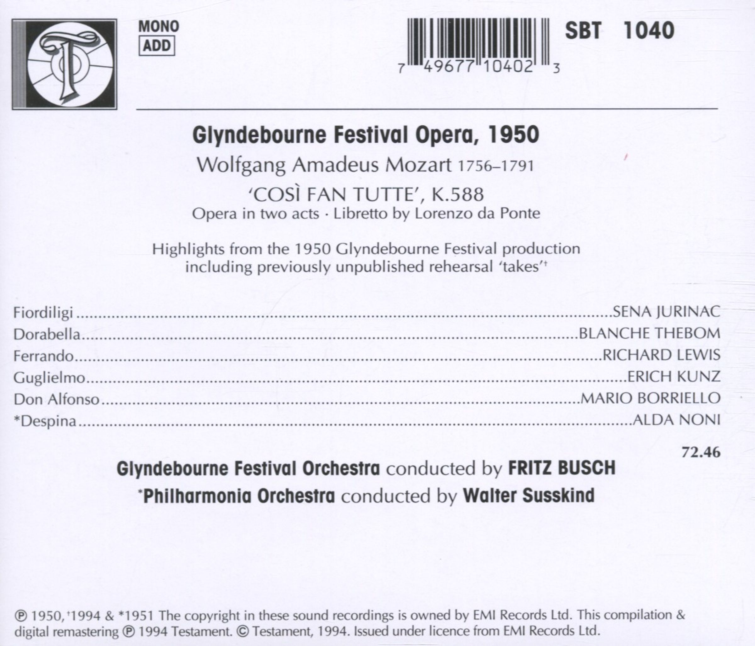 Così fan tutte KV 588 (Oper in 2 Akten) (Gesamtaufnahme)