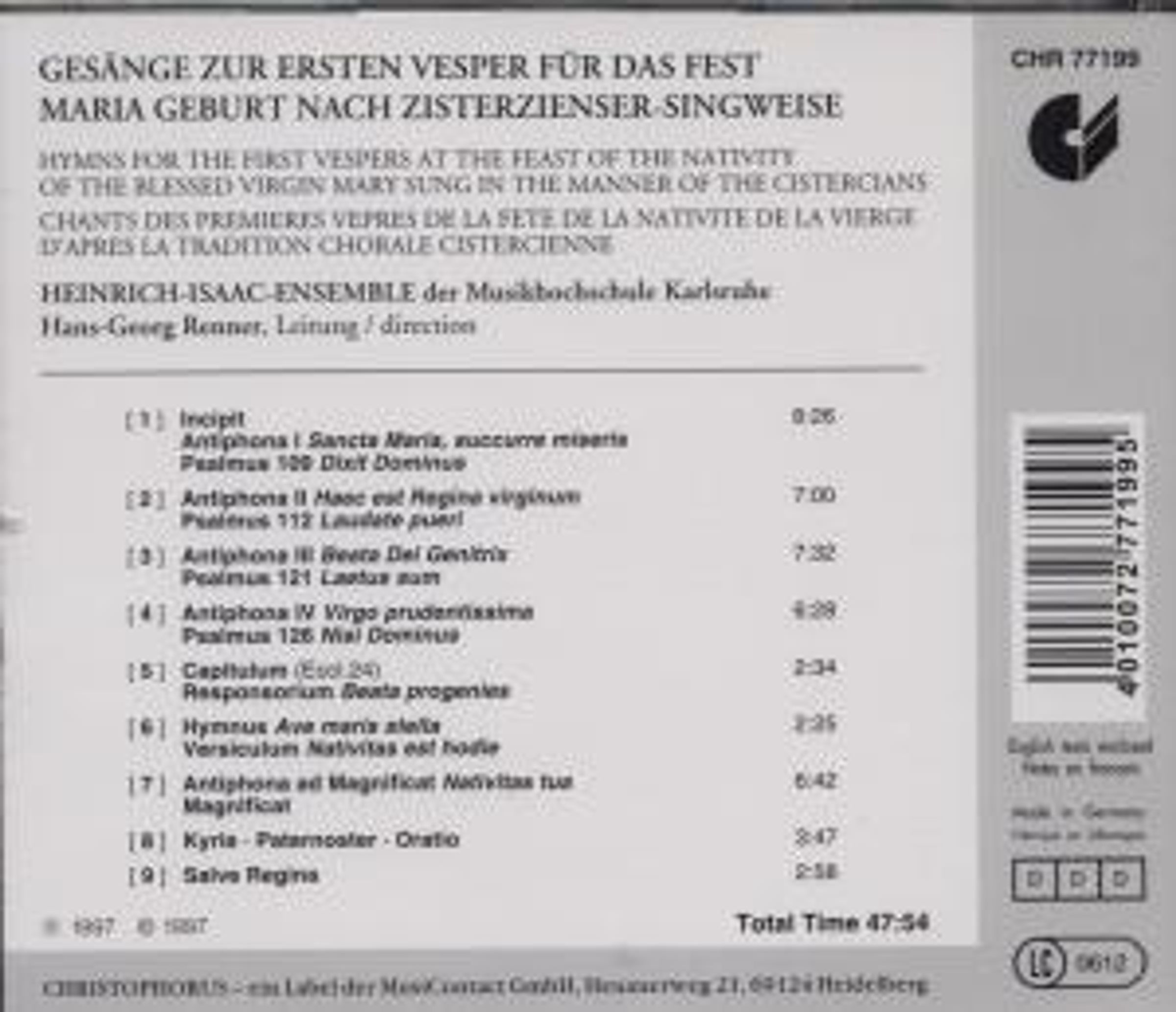 Gesänge zur ersten Vesper für das Fest Maria Geburt nach Zisterzienser- Singweise