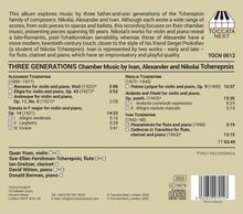 Dieses Album widmet sich der Musik von drei Generationen der Komponistenfamilie Tcherepnin: Nikolai, Alexander und Iwan. Jeder der drei hat ein breites Spektrum an Partituren geschrieben, von Solostücken über Werke für große Ensembles bis hin zu Opern und Balletten; diese Aufnahme konzentriert sich auf den unschätzbaren Beitrag der Familie zur Kammermusik und präsentiert Stücke in einer Vielzahl von Stilen und aus einem Zeitraum von 95 Jahren. Die Werke für Violine und Klavier von Nikolai und Alexander sind selten zu hören gewesen. Die Kammermusik von Ivan ist mit frühen und späten Werken für Flöte, Klarinette und Klavier vertreten.