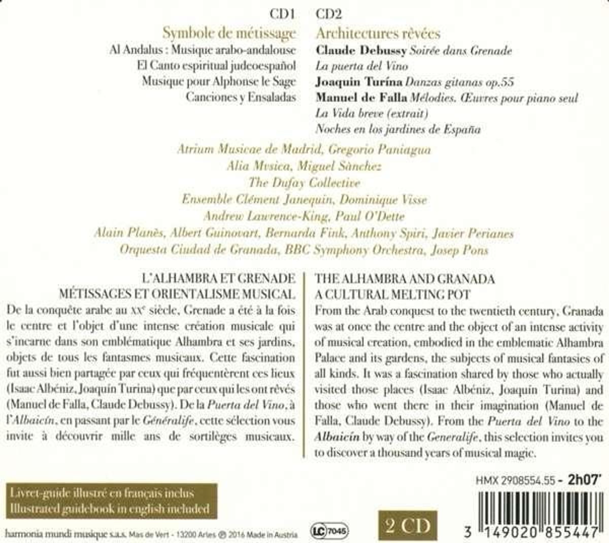 Diese Faszination teilte sich sowohl mit jenen, die diese Orte tatsächlich besuchten (Isaac Albéniz, Joaquín Turina), als auch mit jenen, die sie in ihrer Fantasie bereisten (Manuel de Falla, Claude Debussy). Von der Puerta del Vino über den Generalife bis zum Albaicín lädt diese Auswahl dazu ein, tausend Jahre musikalischer Magie zu entdecken.