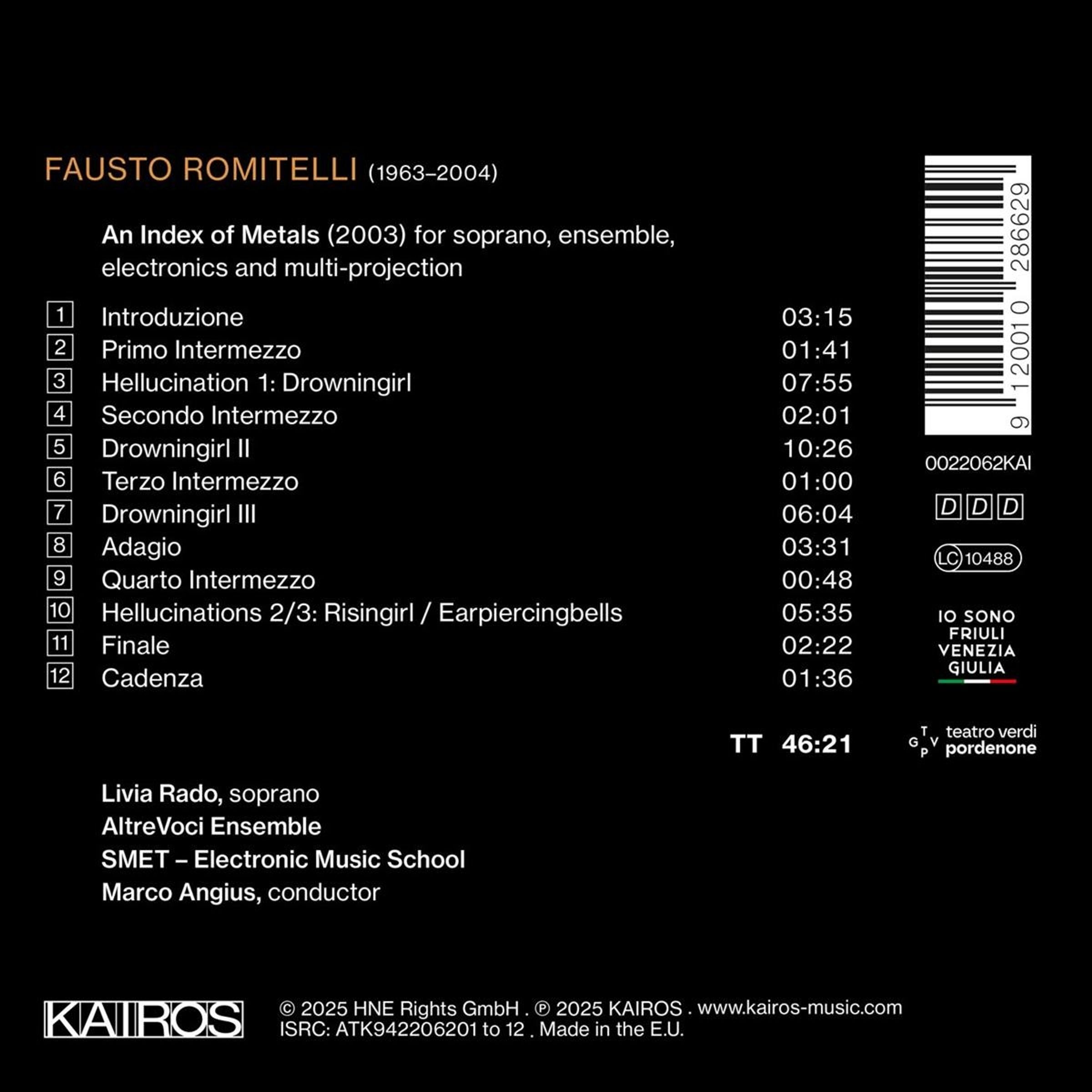 Fausto Romitelli: An Index Of Metals (Video-Oper) auf CD