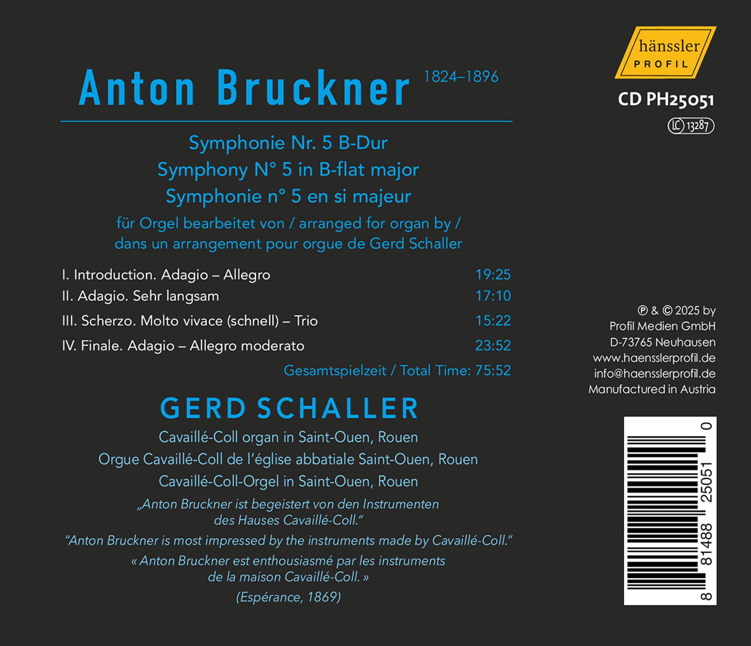Kaum eine andere Symphonie Anton Bruckners wird häufiger mit dem Instrument Orgel in Verbindung gebracht als seine Fünfte. Und in der Tat eignet sich diese Symphonie sehr gut für eine Orgelbearbeitung.