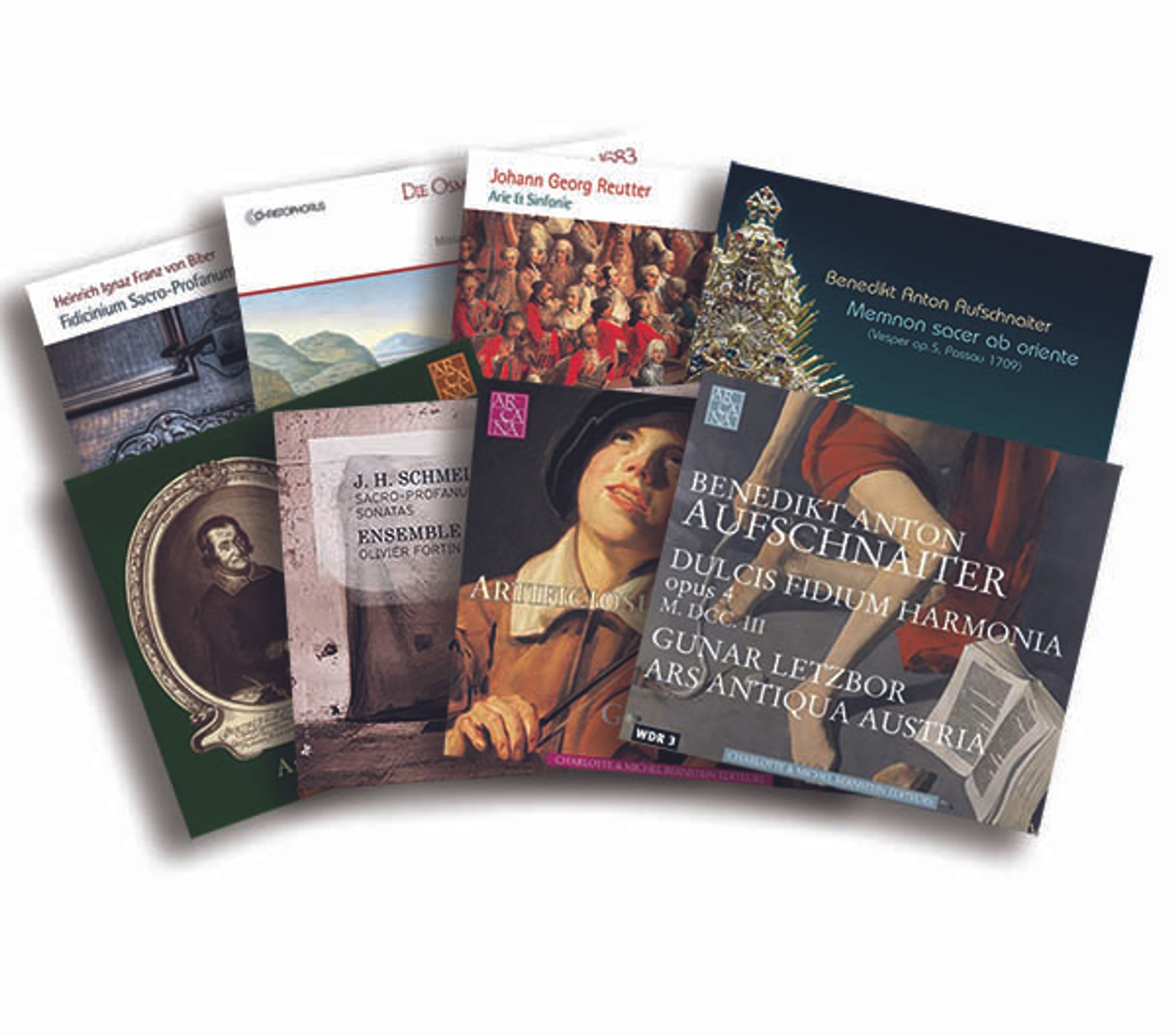 Aufschnaiter: Dulcis Fidium Harmonia op. 4 "Symphoniis ecclesiasticis concinnata" (Sonata I S. Gregorii; Sonata II S. Ambrosii; Sonata III S. Augustii; Sonata IV Hieronymi; Sonata V S. Matthaei; Sonata VI S. Marc"; Sonata VII S. Lucae; Sonata VIII S. Joannis); Vesper op. 5 "Memnon sacer ab oriente" (Dixit Dominus; Confitebor; Beatus Vir; Laudate Pueri; Laudate Dominum; Magnificat)