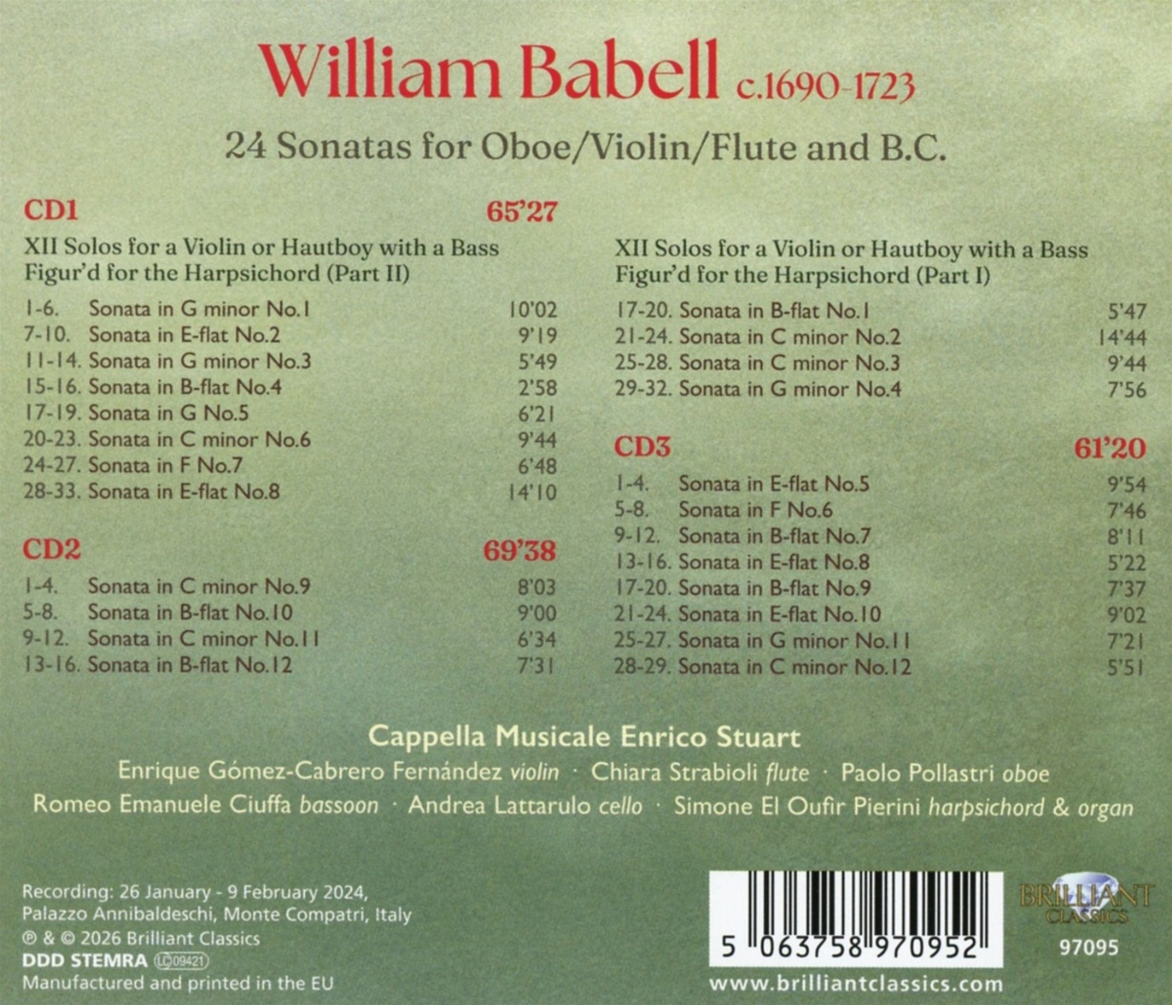 William Babell: Sonaten für Oboe & Bc Part I (Nr.1-12) & Part II (Nr.1-12) auf 3 CDs
