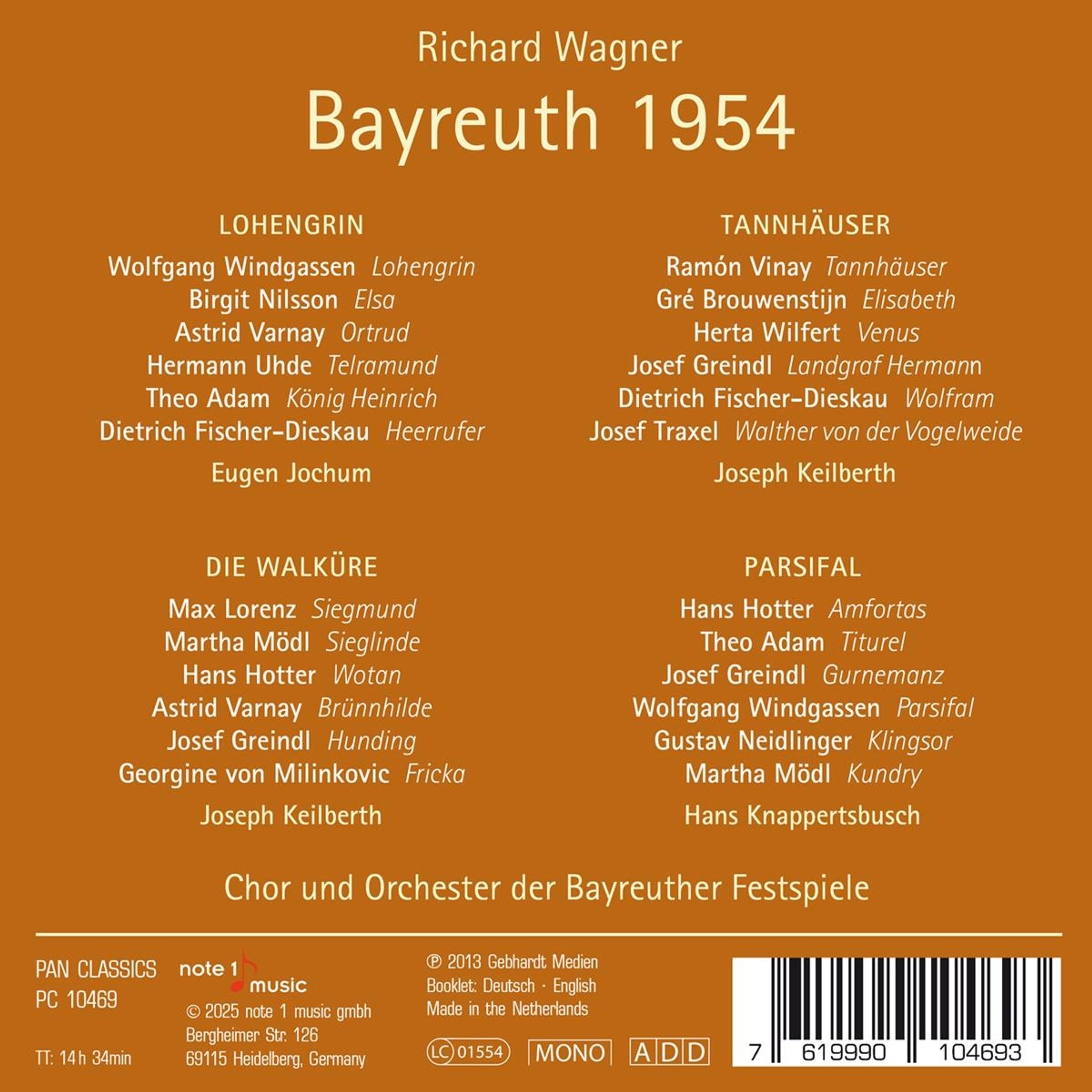 - Wolfgang Windgassen, Birgit Nilsson, Astrid Varnay, Hermann Uhde, Theo Adam, Dietrich Fischer-Dieskau, Max Lorenz, Martha Mödl, Hans Hotter, Josef Greindl, Georgine von Milinkovic, Ramon Vinay, Gre Brouwenstijn, Herta Wilfert, Josef Traxel, Theo Adam, Gustav Neidlinger, Orchester der Bayreuther Festspiele, Eugen Jochum, Joseph Keilberth, Hans Knappertsbusch