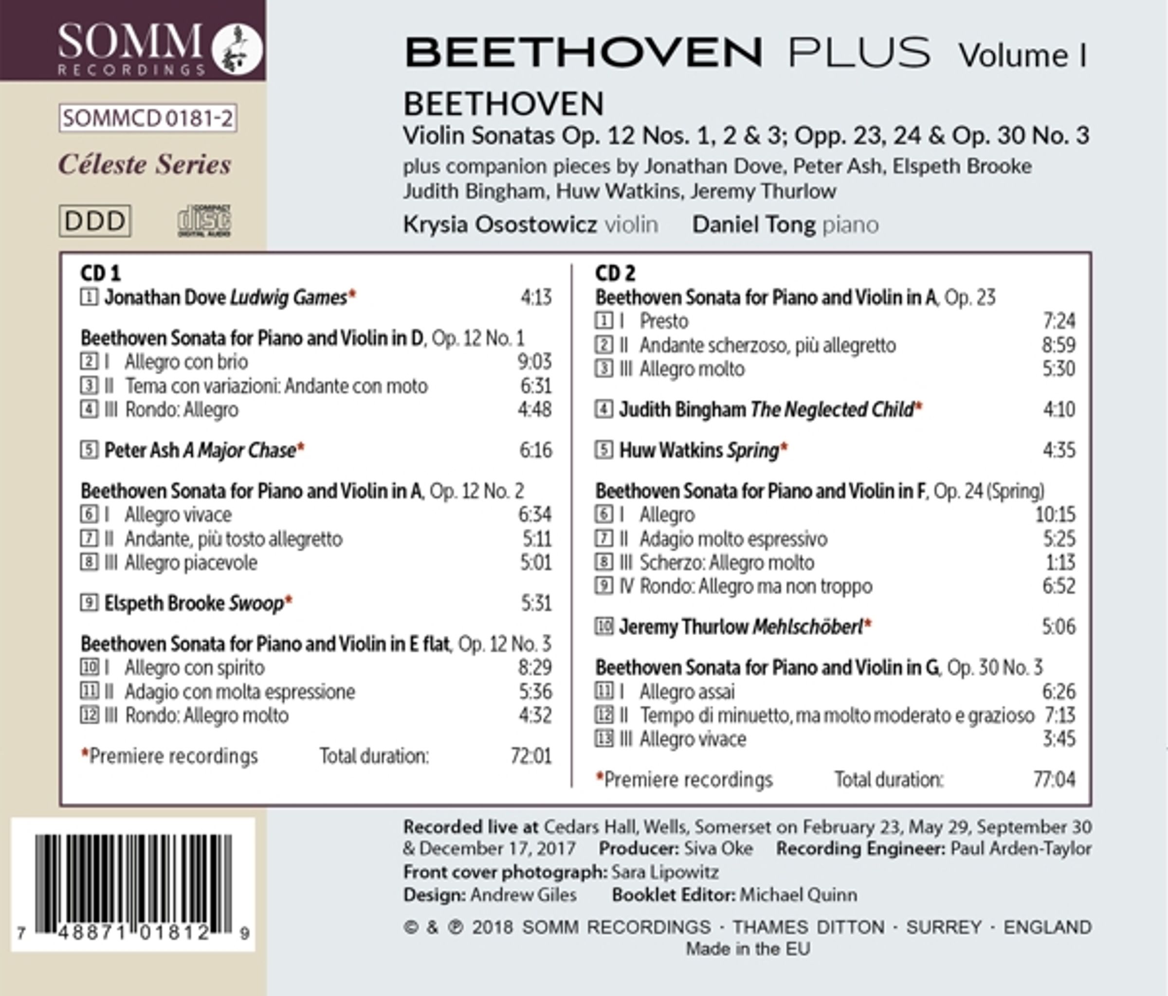 Mit der Einführung der inspirierenden Beethoven Plus-Reihe von Somm Recordings beauftragen die Geigerin Krysia Osostowicz und der Pianist Daniel Tong zehn führende zeitgenössische Komponisten, »Begleitstücke« zu Beethovens bahnbrechender Reihe der zehn Violinsonaten zu schreiben – und sich davon inspirieren zu lassen.