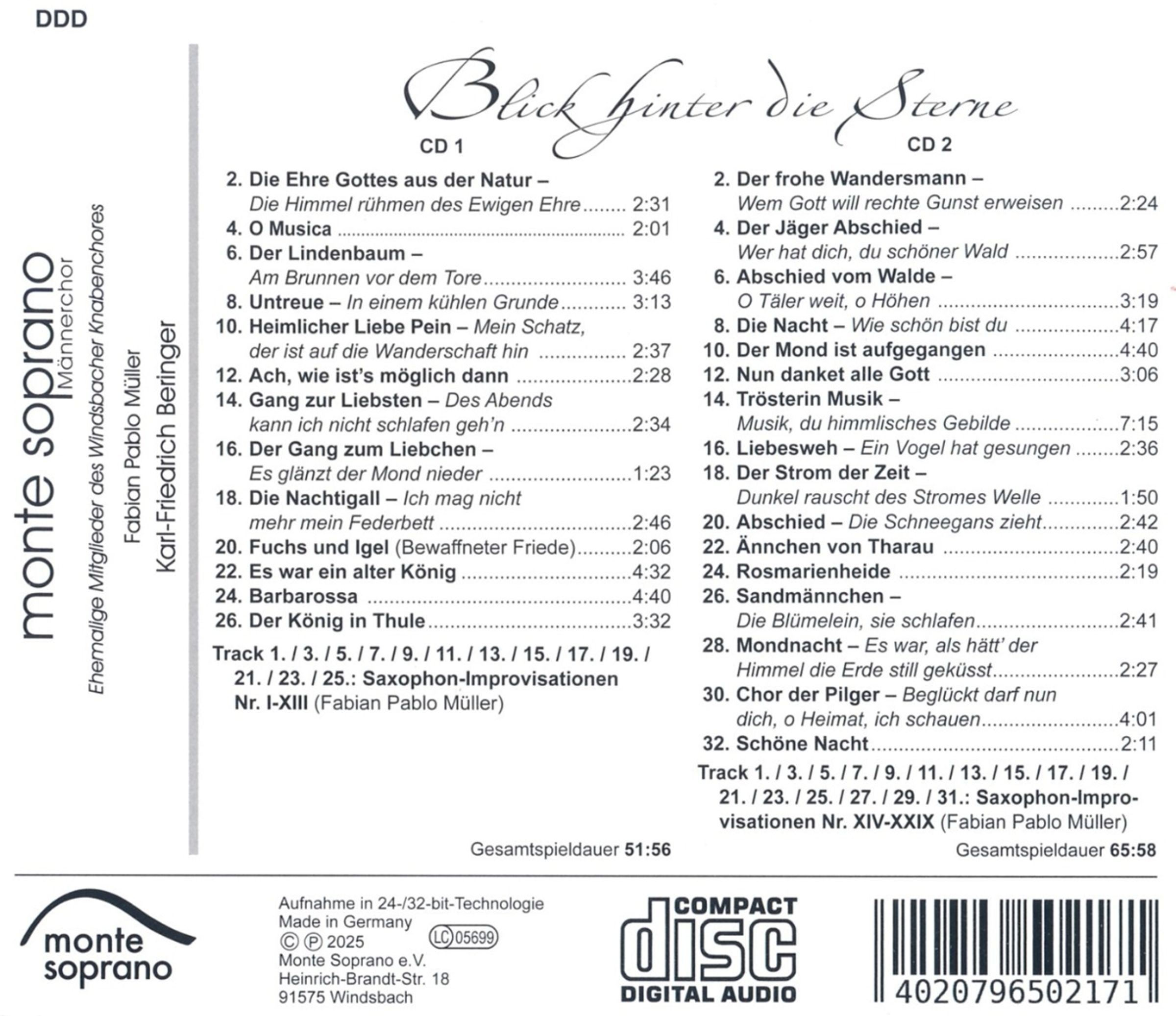 Monte Soprano Männerchor - Blick hinter die Sterne auf CD