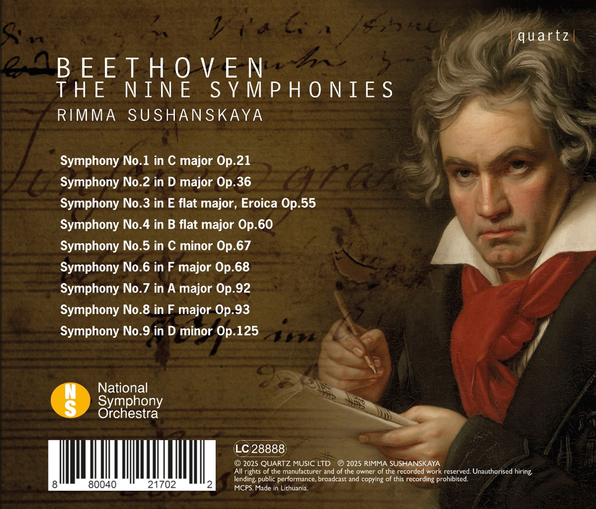 Eine Gesamteinspielung sämtlicher Sinfonien Beethovens wäre heute wohl kaum noch der Rede wert, wenn es nicht wahrhaft das erste Mal wäre, dass eine Frau, die aus St. Petersburg stammende Rimma Sushanskaya, die neun Sinfonien aufgenommen hat. Die Dirigentin und Violinistin Sushanskaya (übrigens die letzte Schülerin David Oistrakhs) leitet bei diesem wahrhaft historischen Zyklus das Londoner National Symphony Orchestra, eines der traditionsreichsten und vielseitigsten professionellen Freiberufler-Orchester, das heute in Großbritannien aktiv ist.