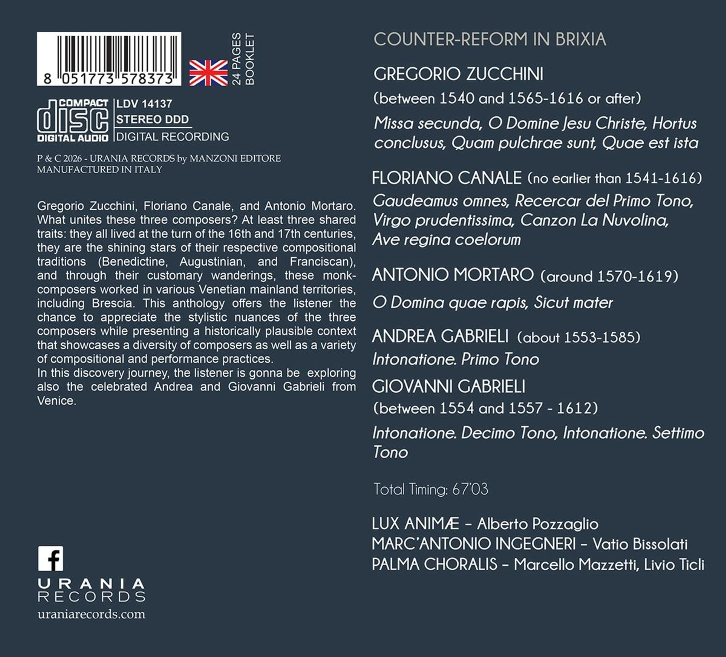 Gregorio Zucchini: Missa secunda; O Domine Jesu Christe; Hortus conclusus; Quam pulchrae sunt; Quae est ista