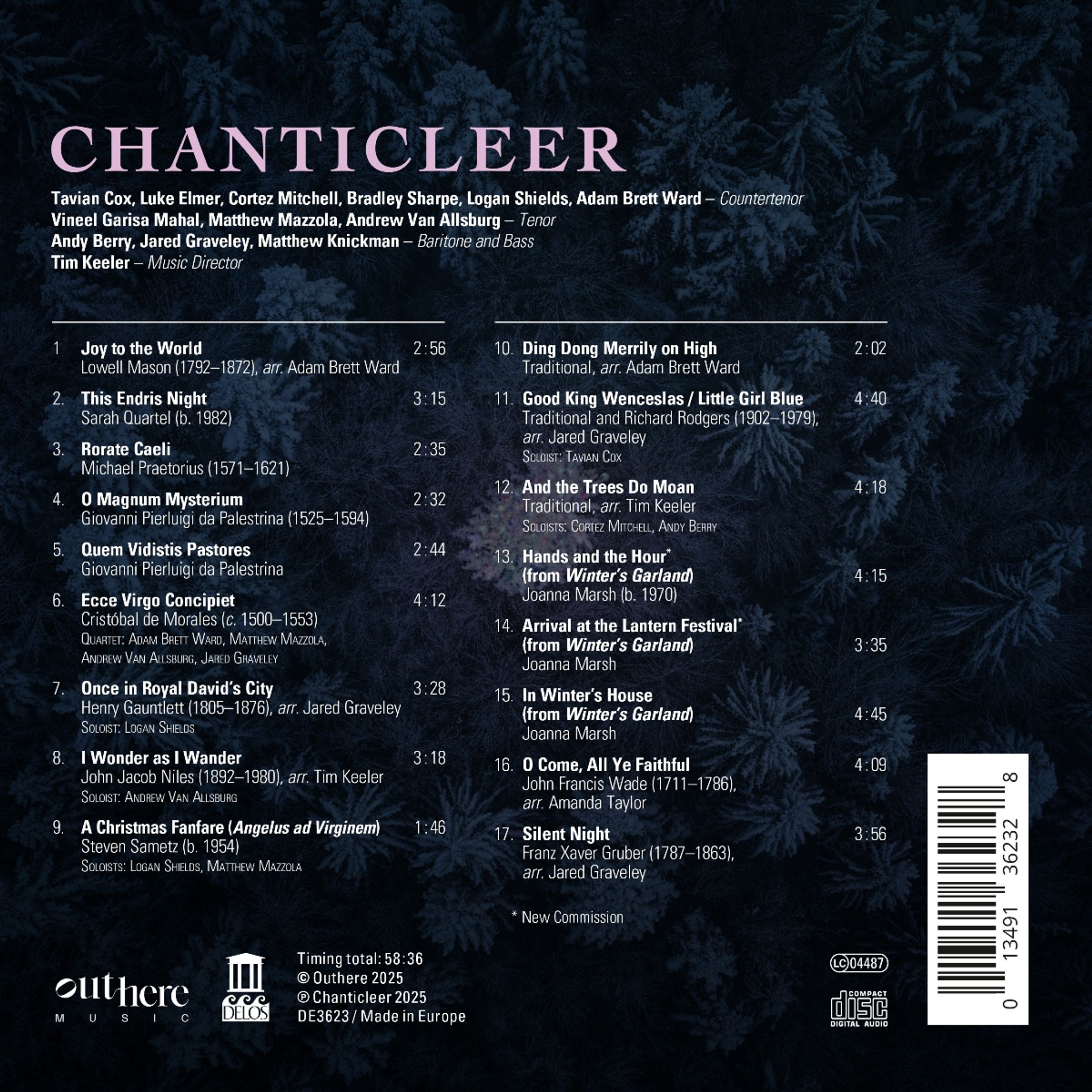 Hoch erfreut gibt Delos die Zusammenarbeit mit dem GRAMMY-prämierten Vokalensemble Chanticleer bekannt. Auf seinem Debütalbum präsentiert das Ensemble mit "präziser Intonation, perfekter Klangverschmelzung, Farbenvielfalt und stilistischer Souveränität" (Boston Globe) jene Qualitäten für die es bereits einen überaus guten Ruf genießt. Das Weihnachtsprogramm verbindet Tradition mit Innovation: Renaissance-Motetten und neue Arrangements klassischer Weihnachtslieder treffen auf zeitgenössische Kompositionen - darunter eigens in Auftrag gegebene Werke der Komponistin Joanna Marsh. Mit seiner außergewöhnlichen Fähigkeit, mühelos und souverän zwischen Stilen zu wechseln, erschafft Chanticleer in seiner ersten Veröffentlichung bei Delos eine winterliche Welt voller Zauber, Licht und Staunen.