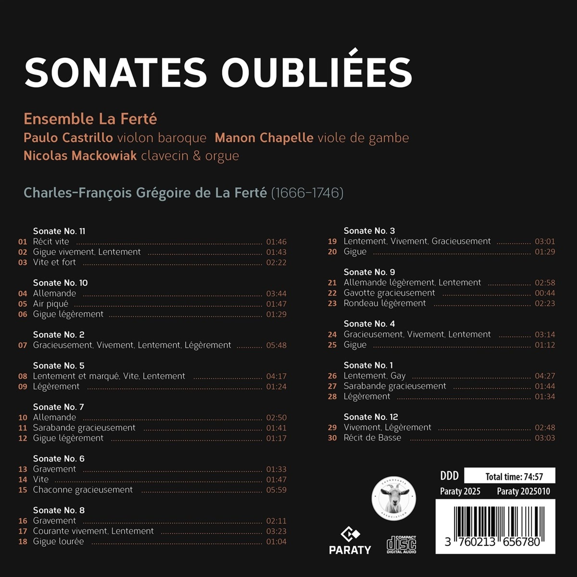 Charles-Francois-Gregoire de la Ferte: Sonates pour le Violon et la Basse Nr.1-12 "Sonates Oubliees" auf CD