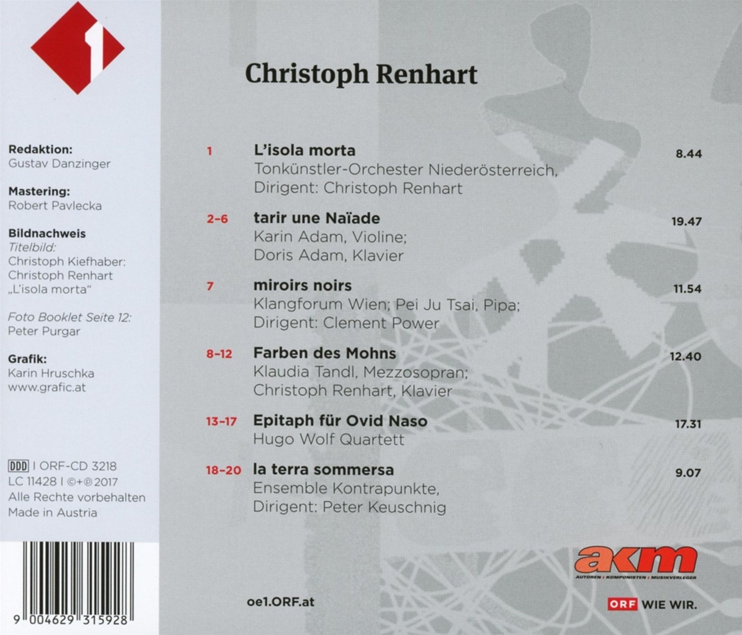 - Klaudia Tandl, Christoph Renhart, Karin Adam, Doris Adam, Hugo Wolf Quartett, Ensemble Kontrapunkte, Klangforum Wien, Tonkünstler-Orchester, Christoph Renhart