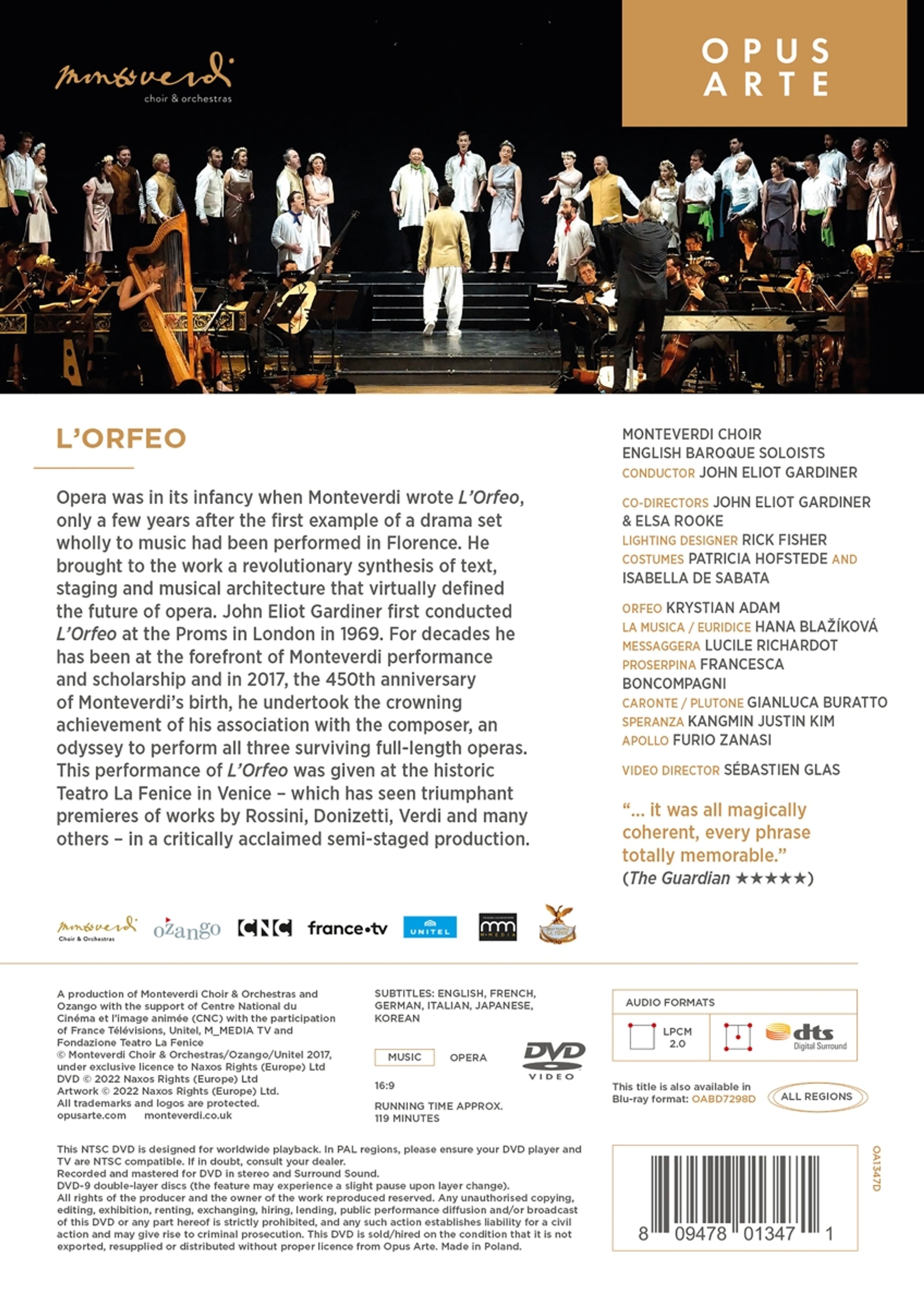 Claudio Monteverdi (1567-1643): L'Orfeo, DVD, DVD