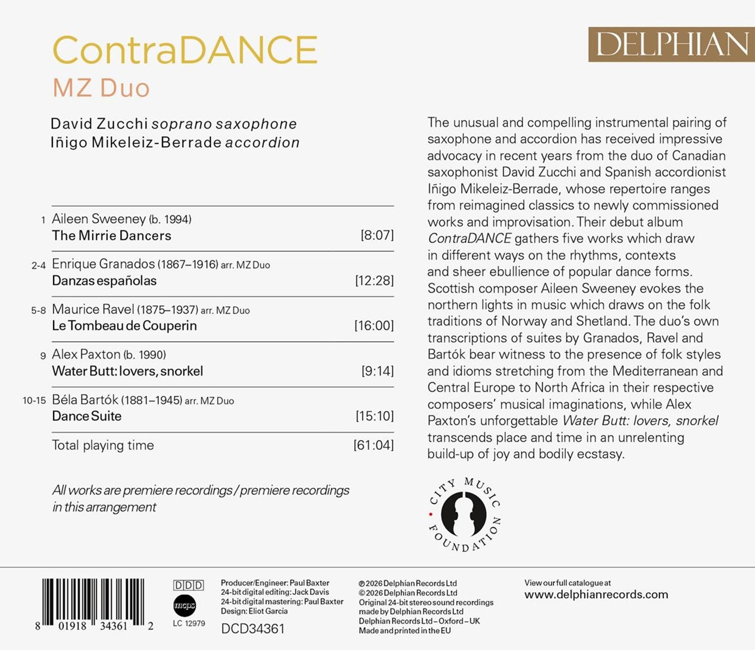 Contra DANCE MZ Duo. Zwei Männer, einer mit Akkordeon, der andere mit Saxophon, vor dunkelblauem Hintergrund., CD