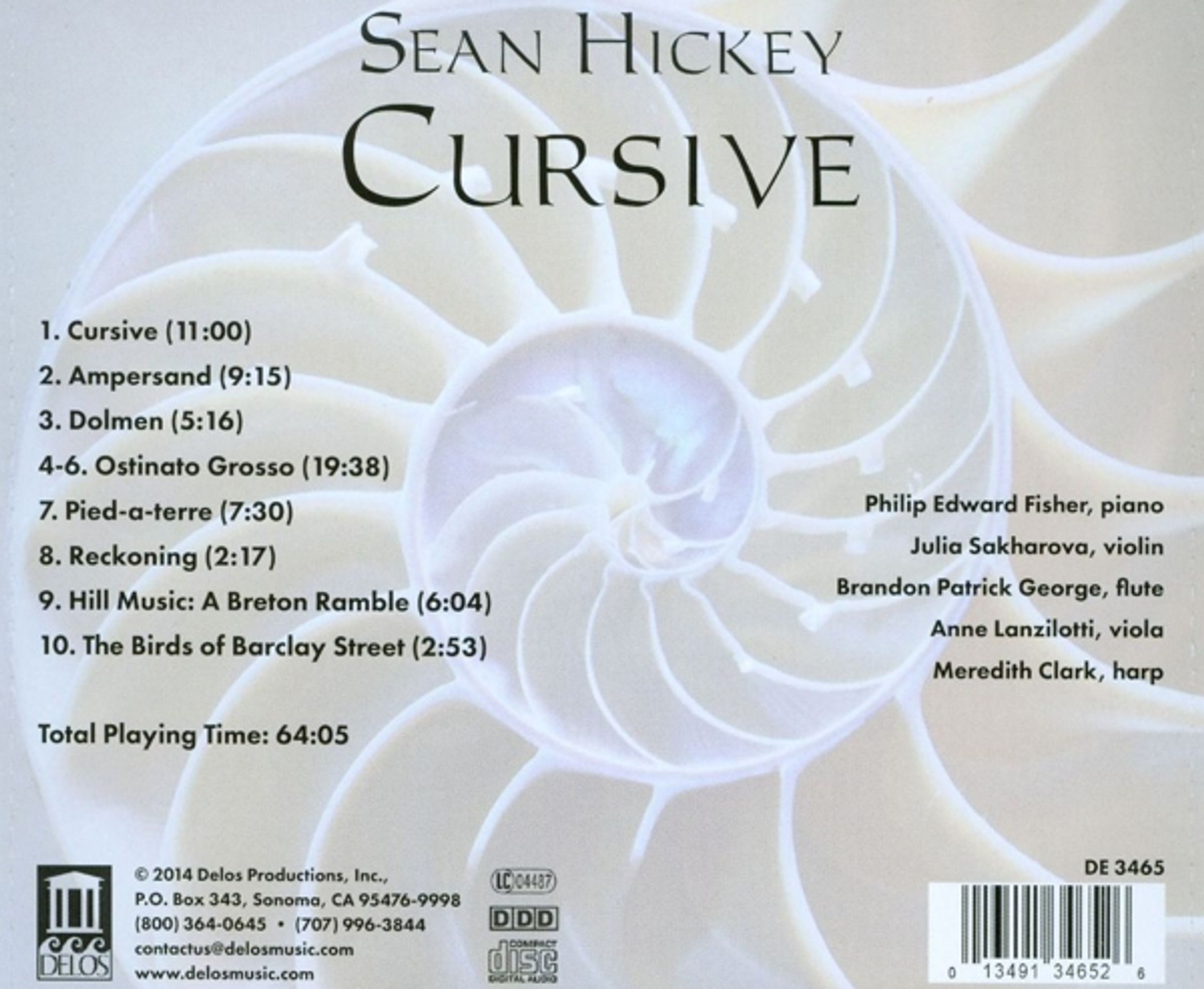 Die acht hier zu hörenden Werke für Soloklavier werden vom renommierten Tastenkünstler Philip Edward Fisher überzeugend vorgetragen; zu den Höhepunkten zählen das Titelstück Cursive sowie Dolmen and Hill Music: a Breton Ramble. Fisher arbeitet außerdem mit der Geigerin Julia Sakharova in Ampersand zusammen: einem eindrucksvollen Kammerstück.