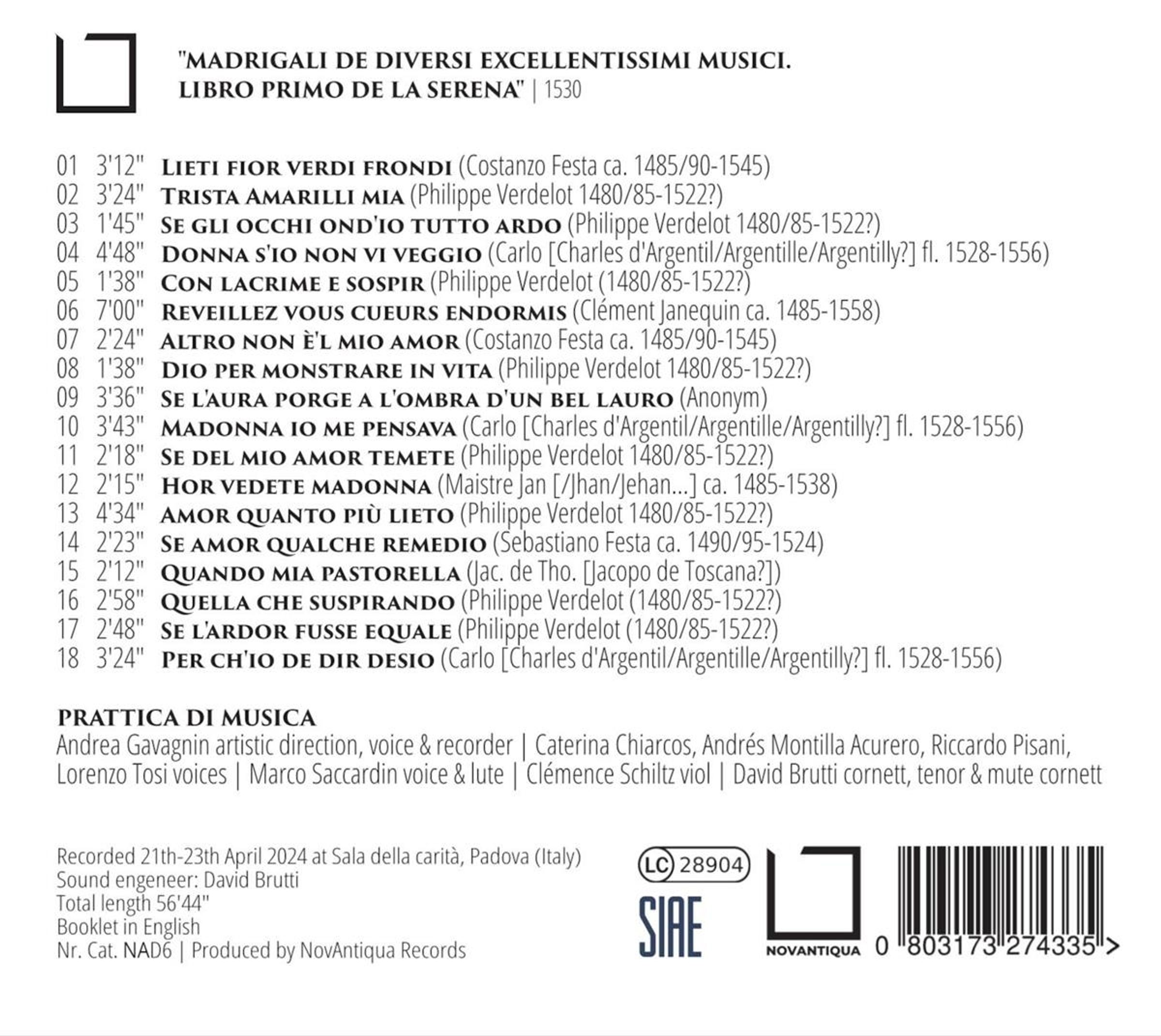 Madrigali de Diversi Excellentissimi Musici - Libro Primo de la Serena (1530) auf CD
