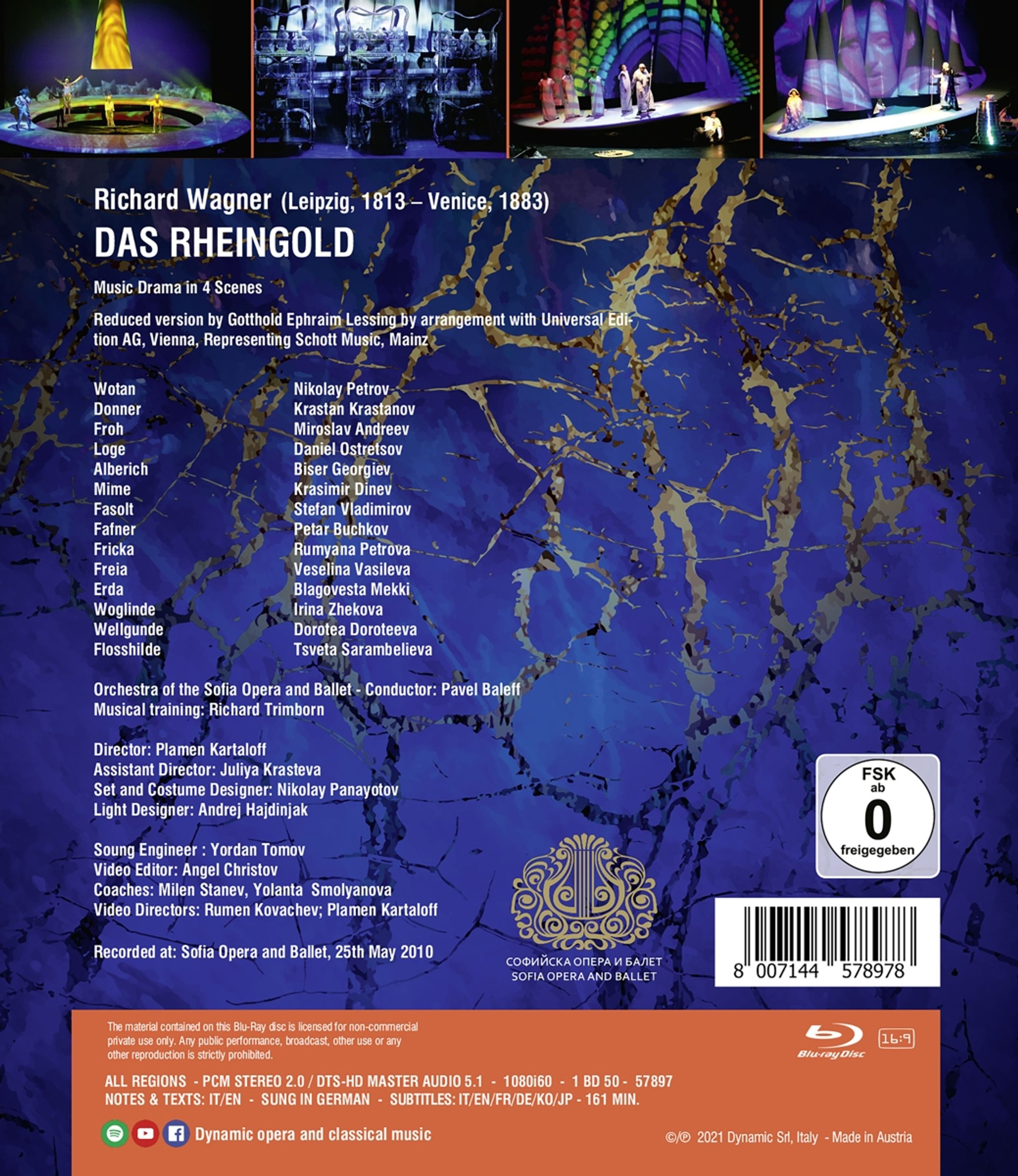 Diese Inszenierung wurde 2010 im Opern- und Balletttheater von Sofia aufgenommen und ist der erste Titel des kompletten Ring-Zyklus, den wir 2021 komplett in einzelnen Titeln veröffentlichen werden. Dem Intendanten des Theaters, Plamen Kartaloff, ist es gelungen, mit einheimischen Darstellern und Mitarbeitern einen erstaunlichen "Ring von Sofia" zu kreieren, wobei er jedes Detail sorgfältig ausgearbeitet hat: von der Gesangsausbildung der Sänger bis hin zu Bühnenbild, Beleuchtung und Kostümen, so dass eine äußerst moderne und fesselnde Wiedergabe entstand, die von der internationalen Presse gefeiert wurde.