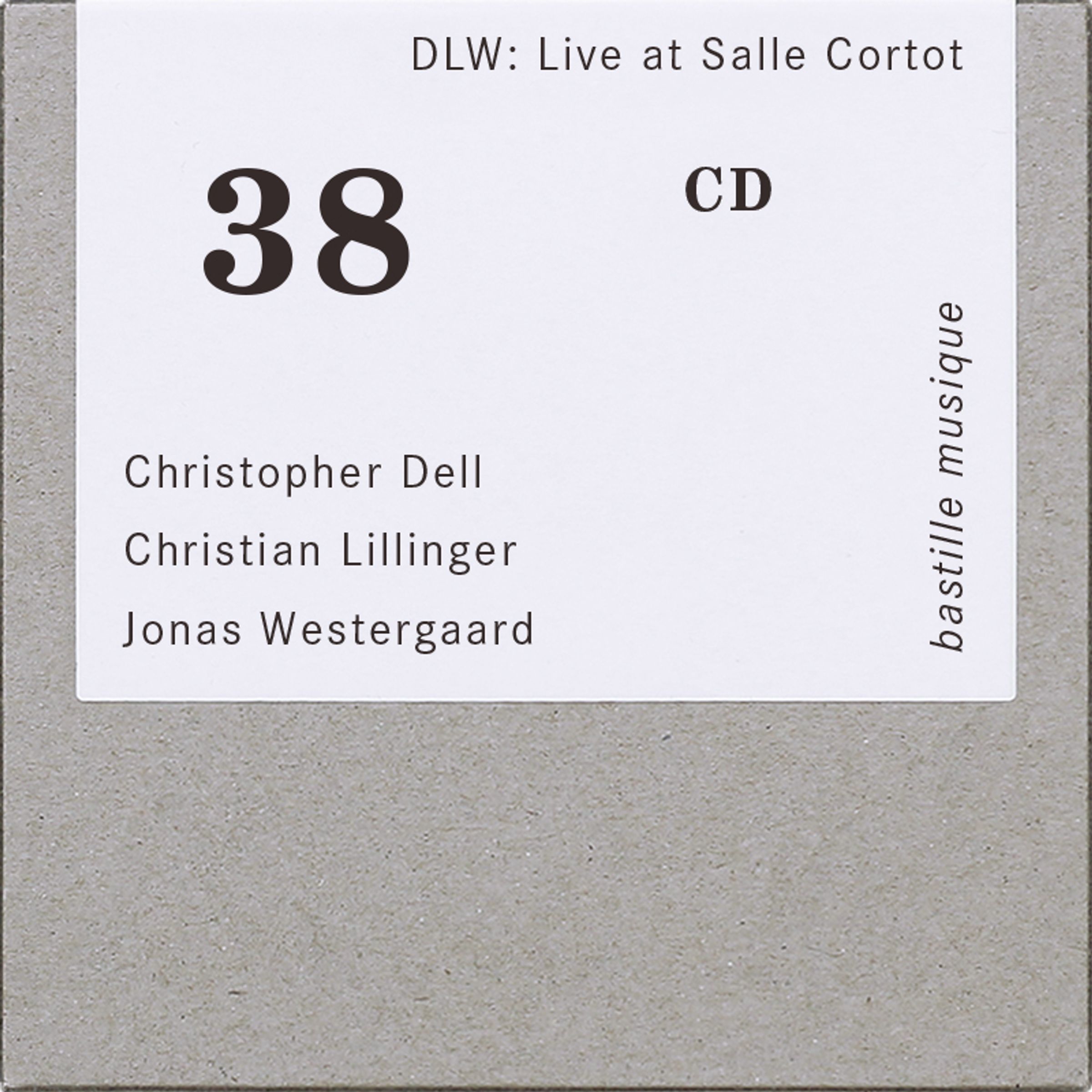 bastille musique präsentiert seine achtunddreißigste Veröffentlichung »DLW: Live at Salle Cortot« mit Ersteinspielungen von Dell-Lillinger-Westergaard. Die Live-Aufnahmen entstanden von 2023 bis 2025 in Spielstätten wie Salle Cortot (Paris), Resonanzraum (Hamburg), Orangerie Theater (Köln), Elbphilharmonie (Hamburg) oder Paul-Robeson-Studio (Berlin) und dokumentieren die Entwicklung des Repertoires von Dell-Lillinger-Westergaard in diesem Zeitraum. Zusätzlich zu den von bastille musique, Radio France und dem NDR produzierten Aufnahmen sind ein 60-seitiges, zweisprachiges Booklet (EN, DE) mit einem Essay von Gregor Dotzauer und einem Gespräch mit DLW enthalten sowie zwei Foto-Leporellos der Komponisten und Interpreten.