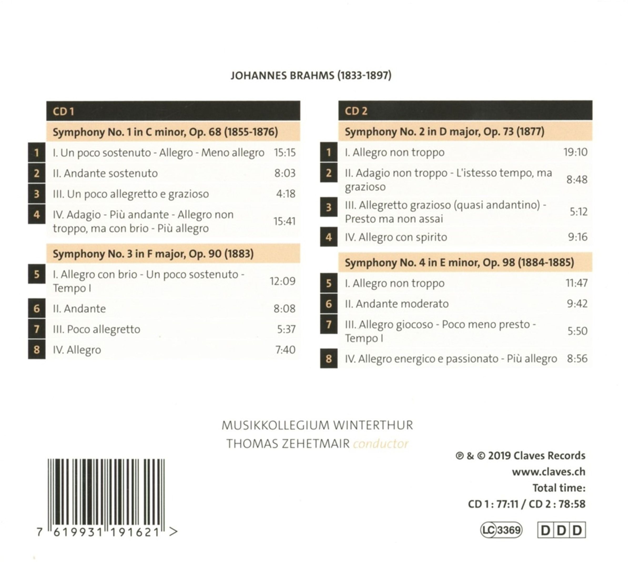 Das Musikkollegium Winterthur rundete seine Konzertsaison 2018 / 19 mit einem sechstägigen Brahms-Festival ab, bei dem neben zahlreichen anderen Werken von Johannes Brahms die vier Sinfonien des Komponisten unter dem Chefdirigenten Thomas Zehetmair aufgeführt wurden. Das traditionsreiche Schweizer Orchester blickt auf eine stolze Geschichte zurück, die bis ins Jahr 1629 zurückreicht. Brahms besuchte Winterthur häufig, und seine Kompositionen wurden vom Winterthurer Musikverlag Jakob Melchior Rieter-Biedermann herausgebracht, den dieser 1849 gegründet hatte.