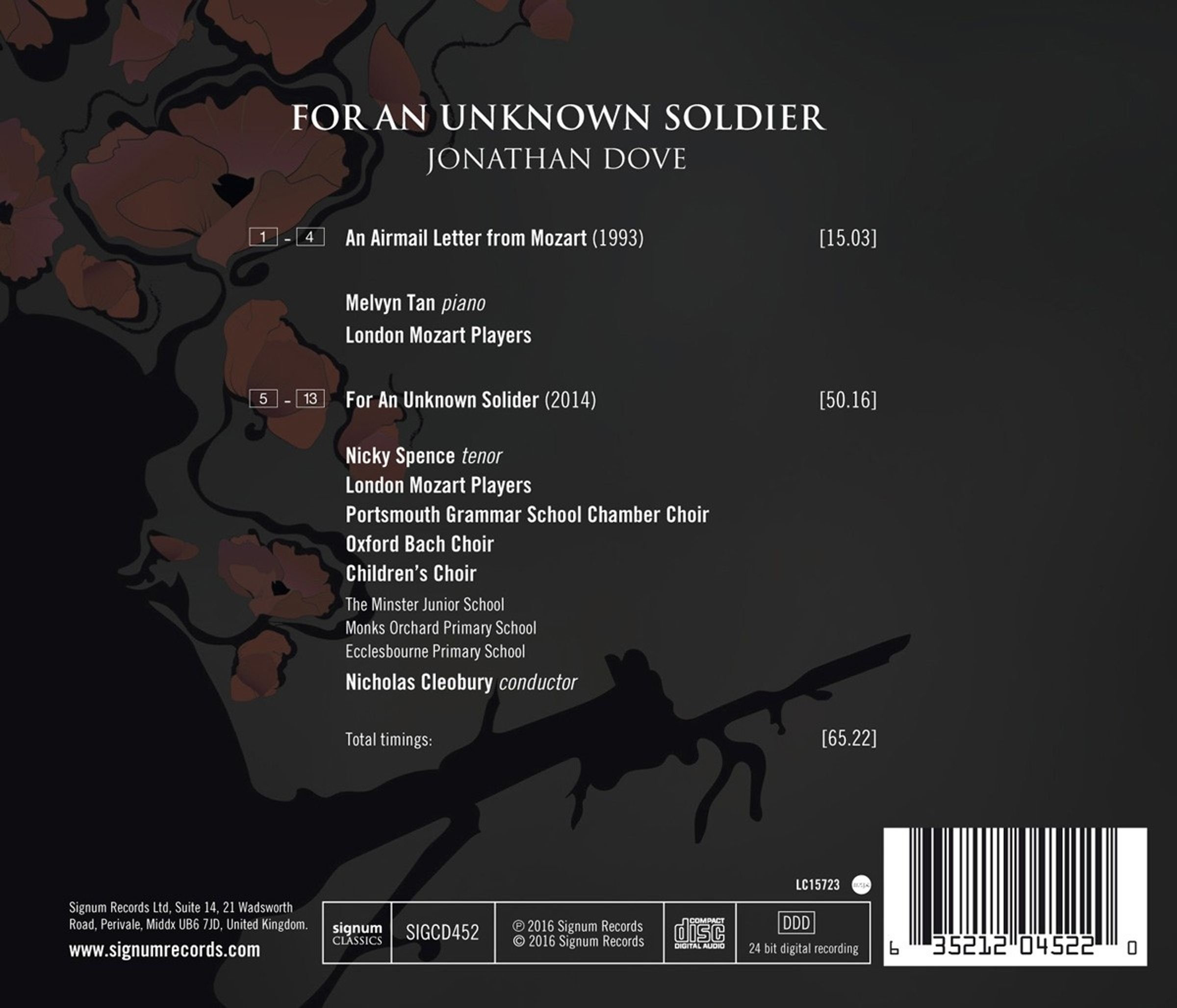Jonathan Dove: For an Unknown Soldier auf CD