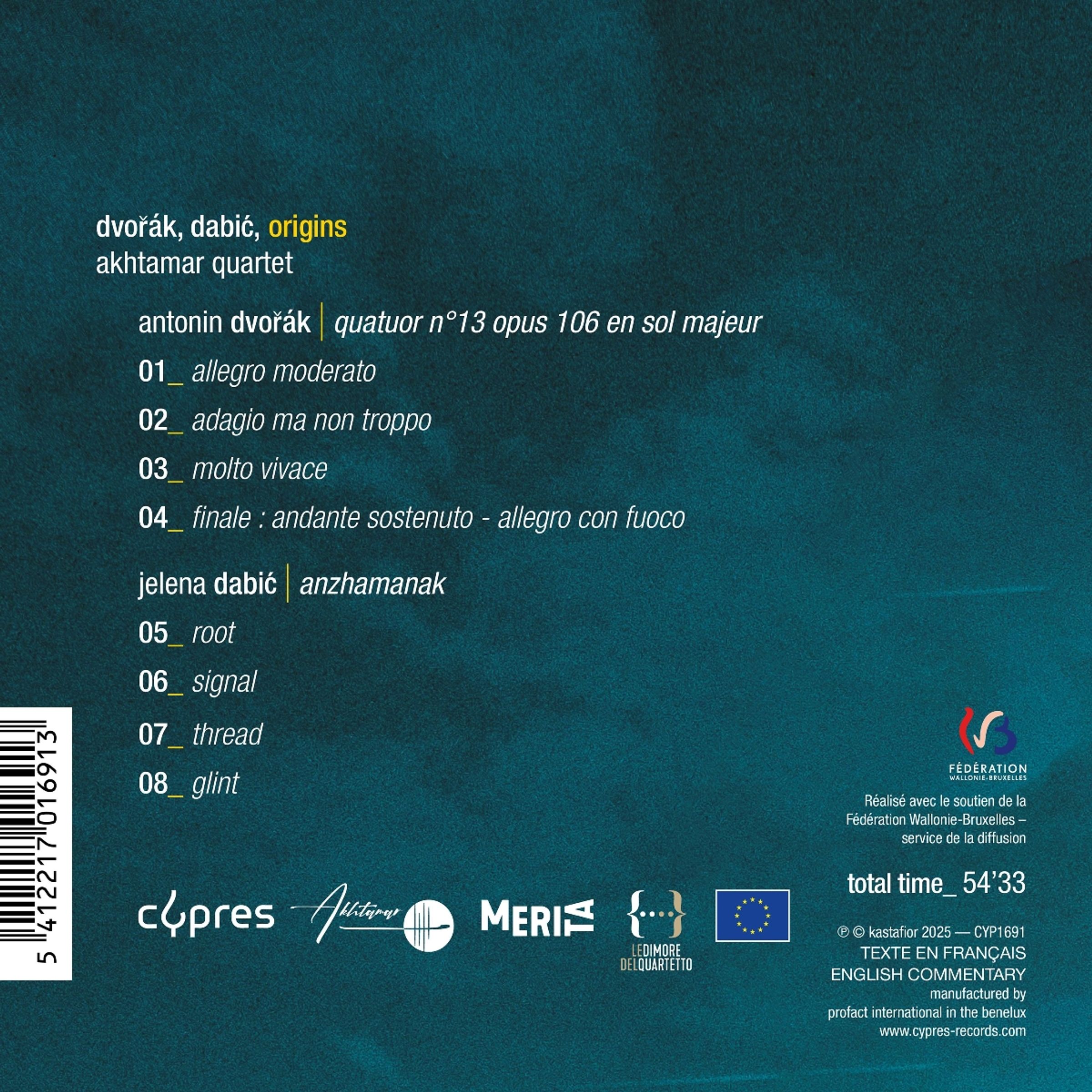Seit seiner Gründung begeistert sich das Akhtamar Quartett für die Verflechtung von klassischer und Volksmusik sowie für die Erkundung verschiedener Kulturen. "Origins", das dritte Album des Akhtamar Quartetts bei Cypres, verbindet klassisches und folkloristisches Erbe mit zeitgenössischer Kammermusik und lädt dazu ein, gemeinsame Geschichten und universelle Emotionen zu entdecken. Von Antonin Dvorak bis zur 1982 geborenen serbischen Komponistin Jelena Dabic wird Musik hier zur zeitlosen Poesie, die uns durch die Epochen tragt. "Origins" feiert das romantische Erbe, verkörpert durch den reifen Stil Dvoraks, ebenso wie die Öffnung hin zu einer neuen Kompositions-Generation. "Anzhamanak" der Komponistin Jelena Dabic ist ein Rausch an Klangfarben und offenbart die ganze Ausdruckskraft des Akhtamar Quartetts.