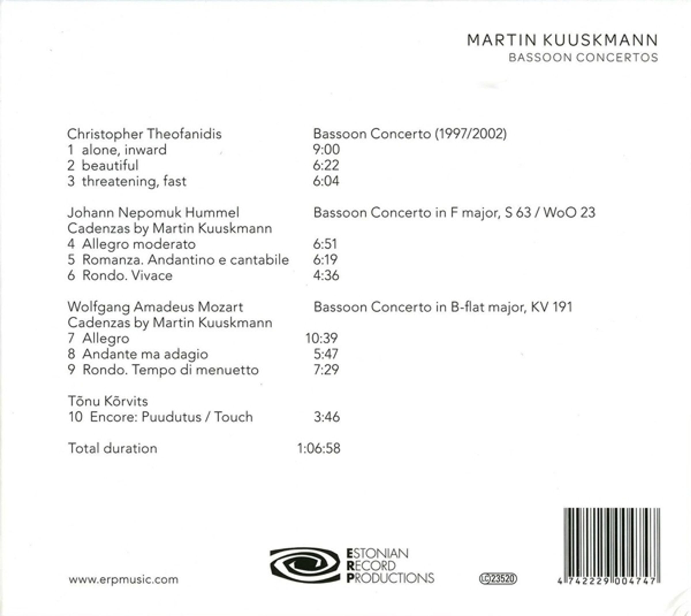 Martin Kuuskmann - Fagottkonzerte auf CD