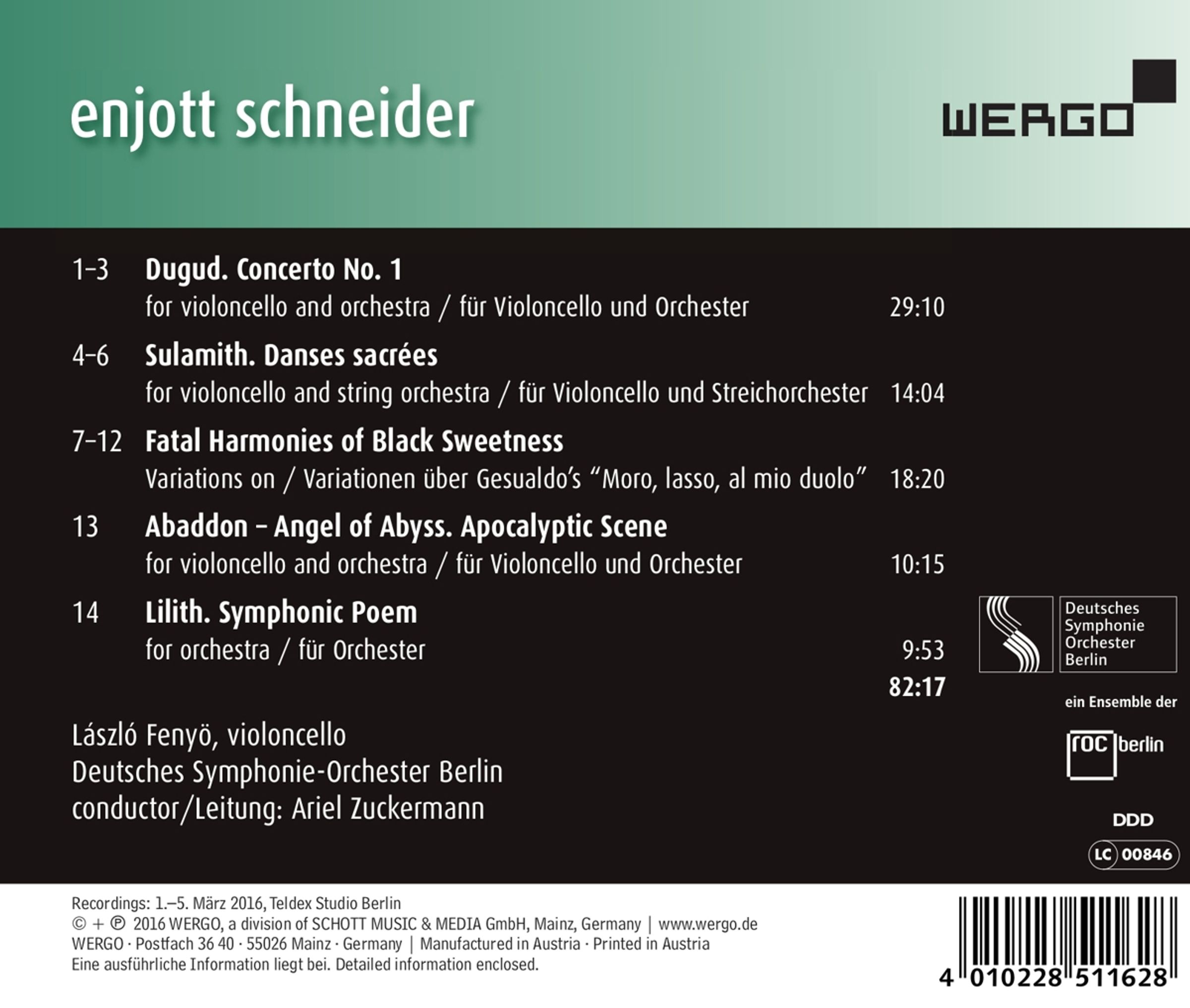Cellokonzert Nr. 1 "Dugud"; Sulamith für Cello & Streichorchester; Fatal Harmonies of Black Sweetness; Abbadon - Angel of Abyss für Cello & Orchester; Lilith für Orchester