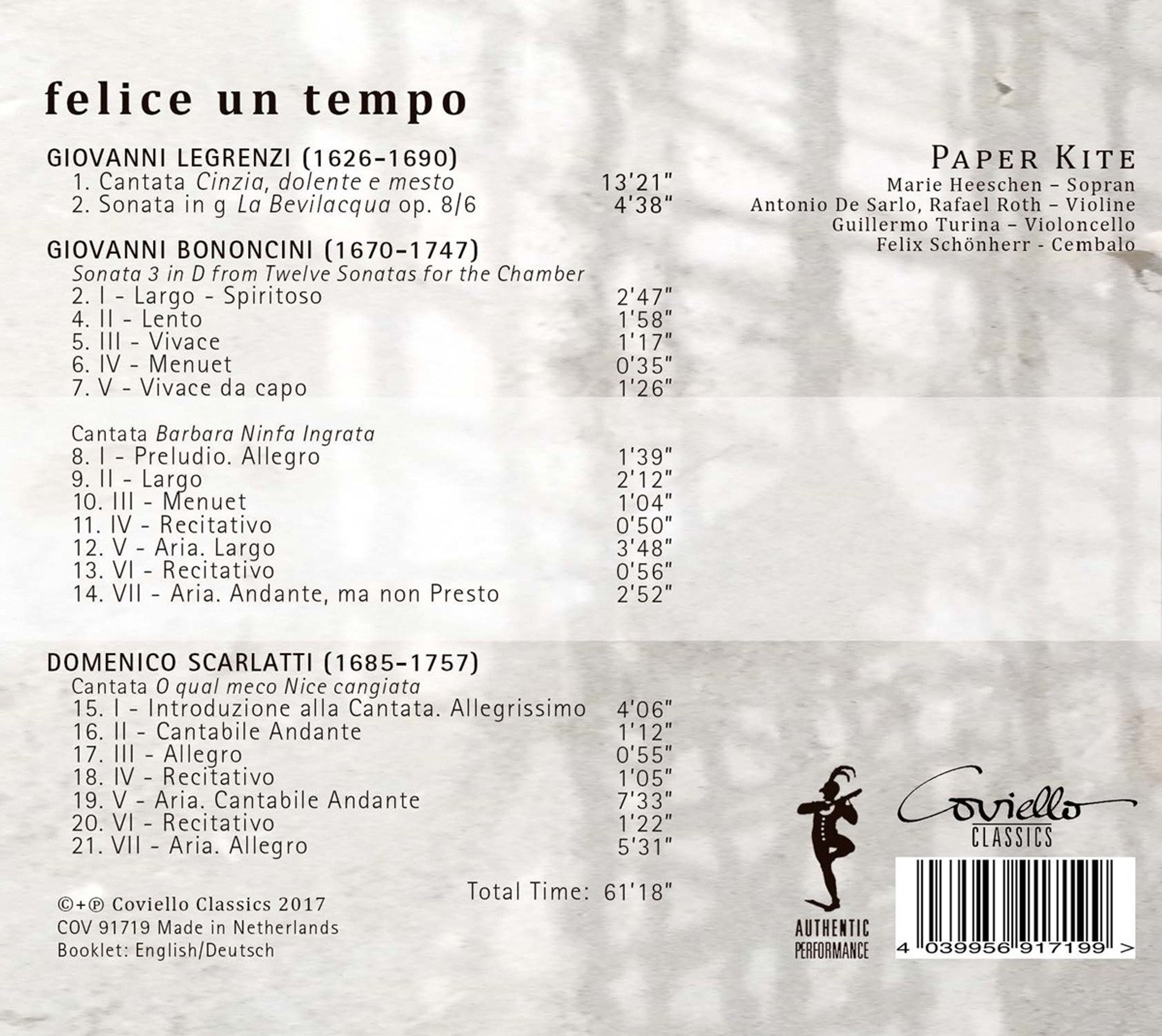 +Legrenzi: Kantate "Cinzia, dolente e mesto"; Sonata op. 8 Nr. 6 "La Bevilacqua"