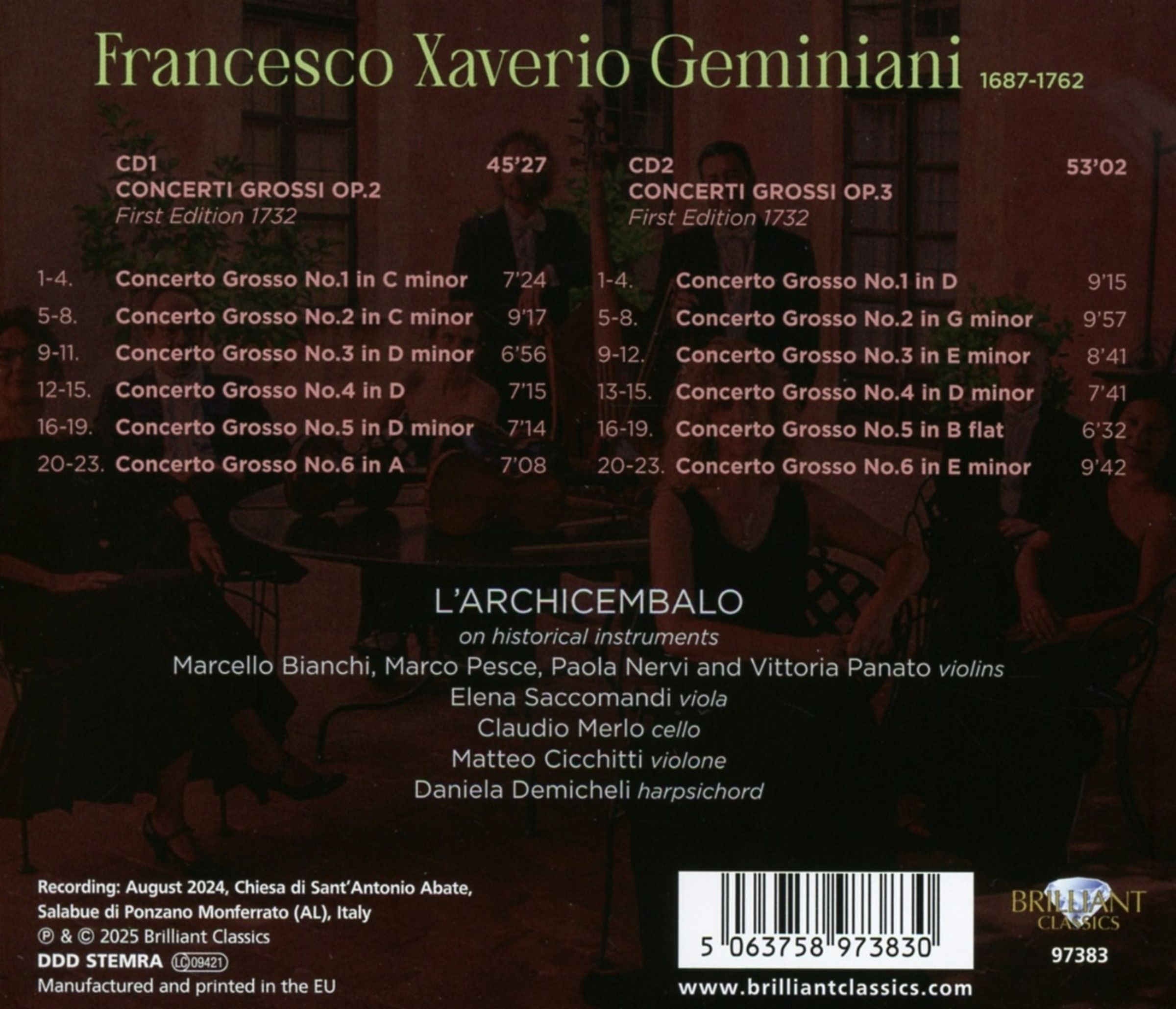Gespielt vom italienischen Eliteensemble L'Archicembalo, das zuvor die Streichkonzerte von Vivaldi für Brilliant Classics mit großem Erfolg einspielte.