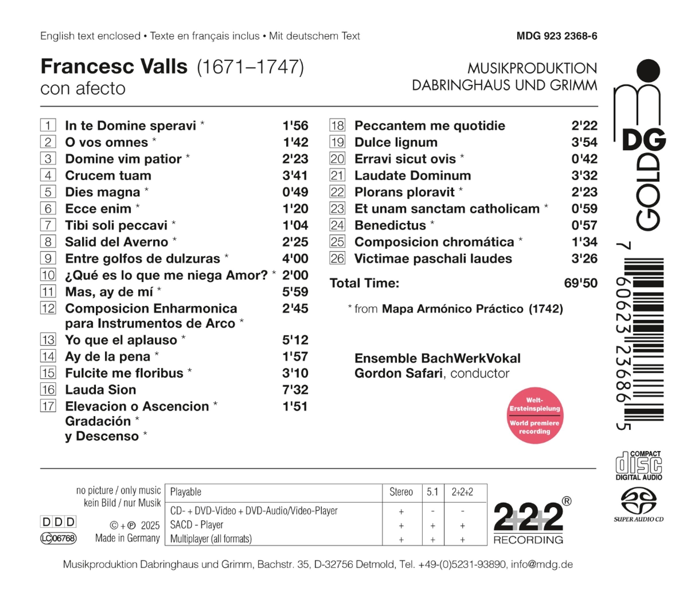 Francisco Valls: Geistliche Chorwerke "Con afecto" auf Super Audio CD