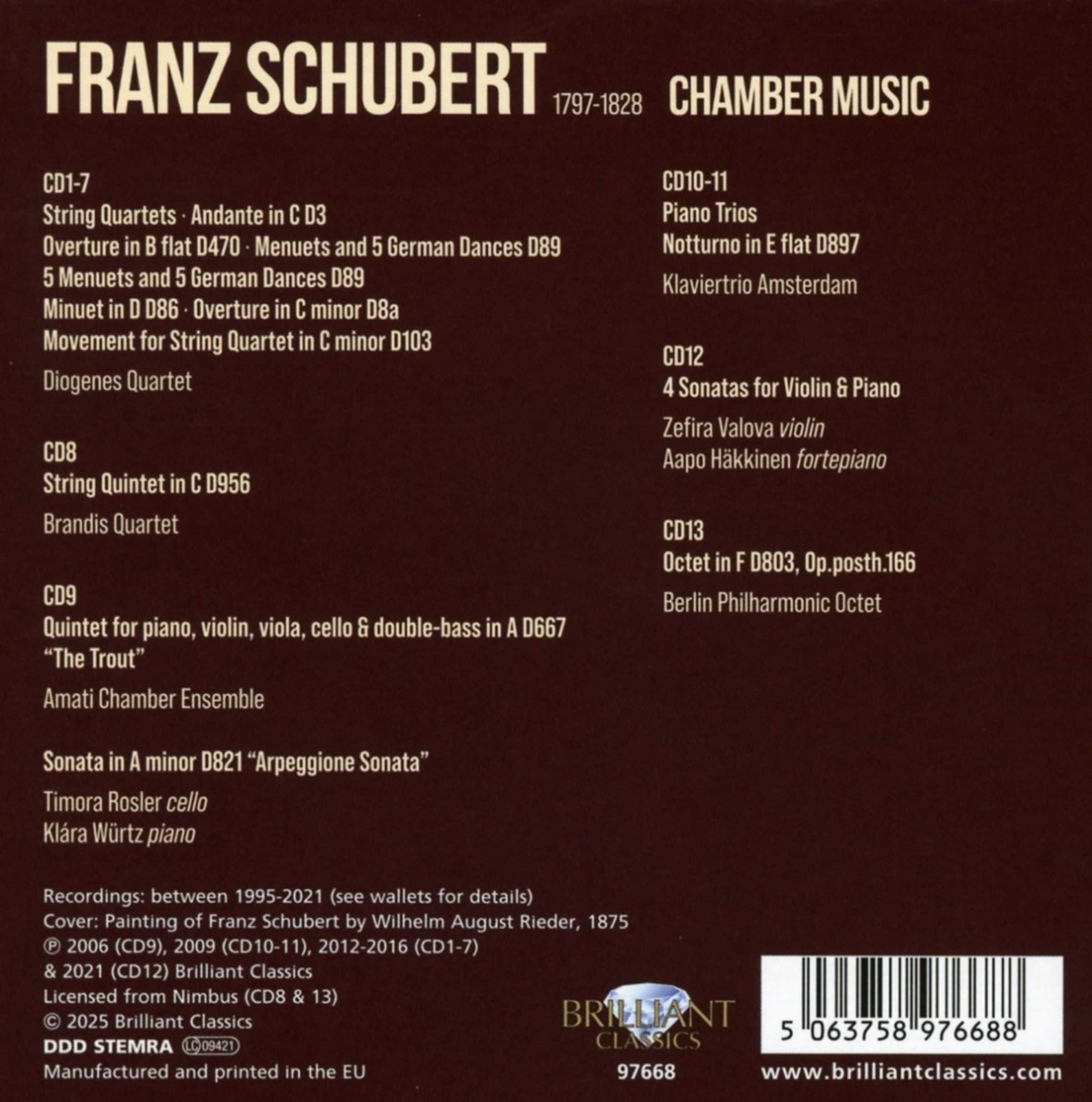 Franz Schubert: Kammermusik auf 13 CDs