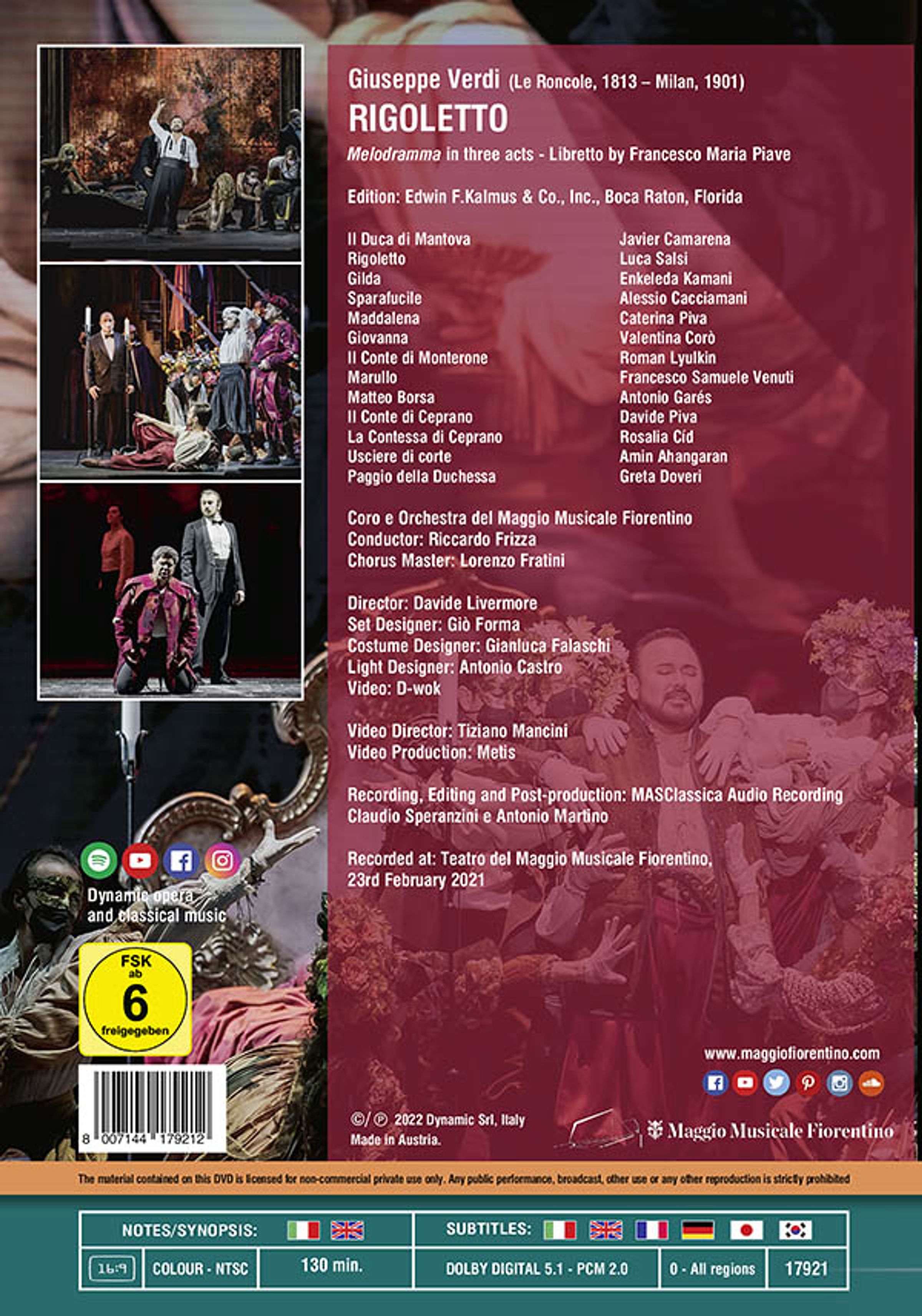 - Javier Camarena, Luca Salsi, Enkeleda Kamani, Alessio Cacciamani, Orchestra del Maggio Musicale Fiorentino, Riccardo Frizza