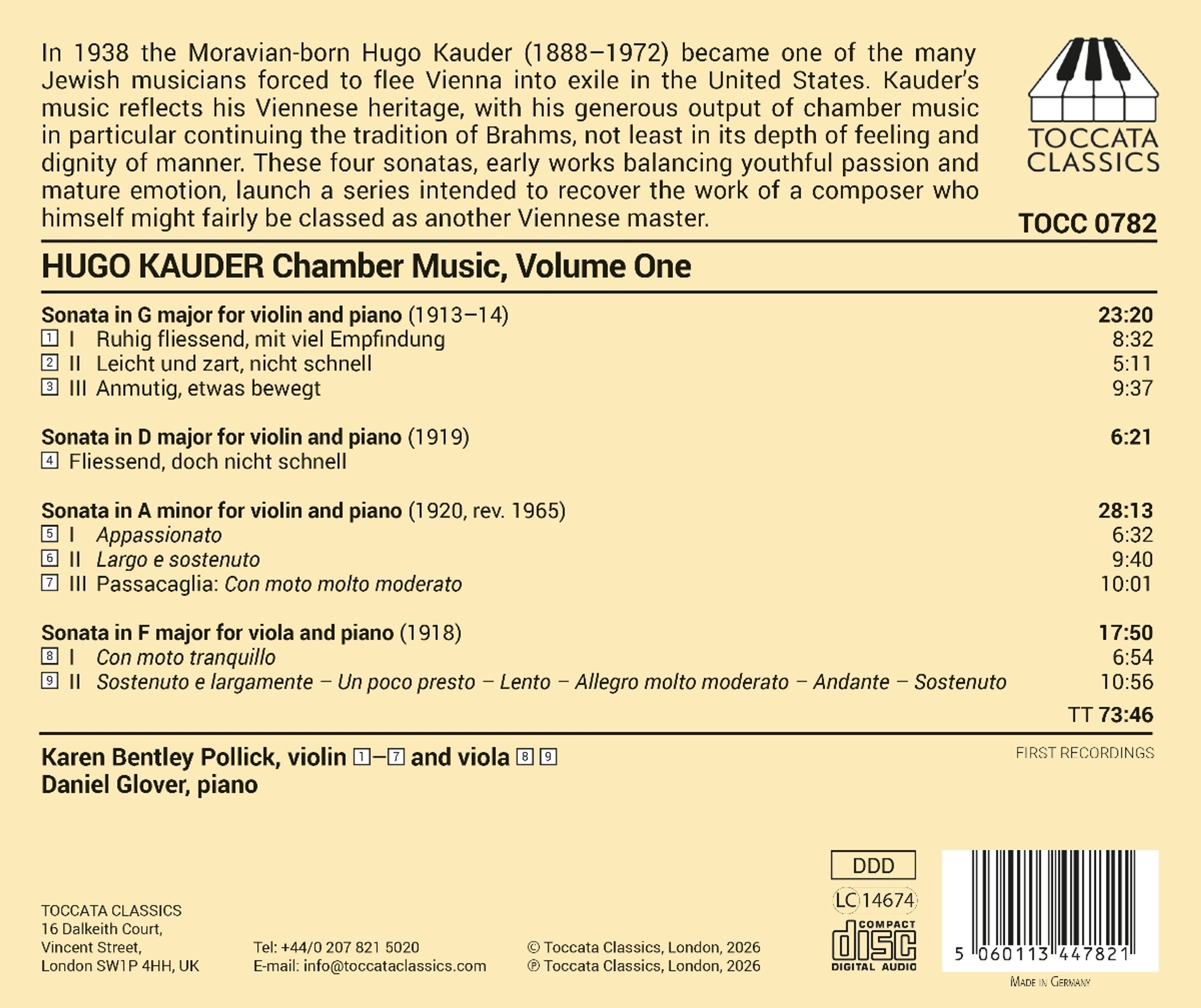 "Hugo KAUDER: Chamber Music, Volume One: Sonatas I. Foto eines ernst blickenden Mannes im Anzug.", CD