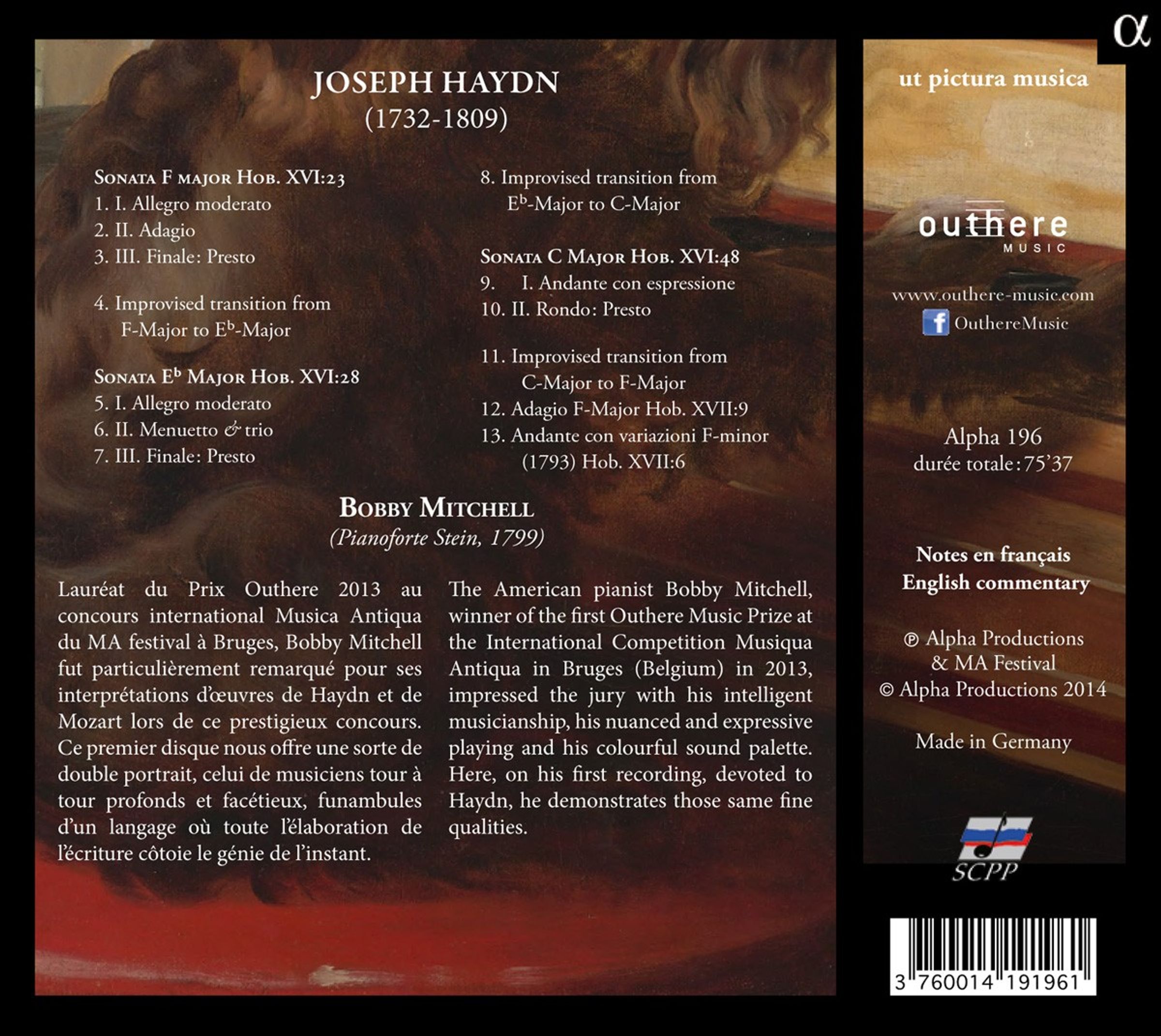 Beim Internationalen Musikwettbewerb Musica Antiqua in Brügge überzeugte der junge amerikanische Pianist Bobby Mitchell 2013 die Jury durch sein intelligente Musikalität, sein nuanciertes und expressives Spiel sowie durch seine breite Farbpalette, was ihm prompt den Outhere-Musikpreis einbrachte. Bei seiner Einspielung mit Klavierwerken von Haydn weiß er, diese Qualitäten ebenfalls einzubringen.